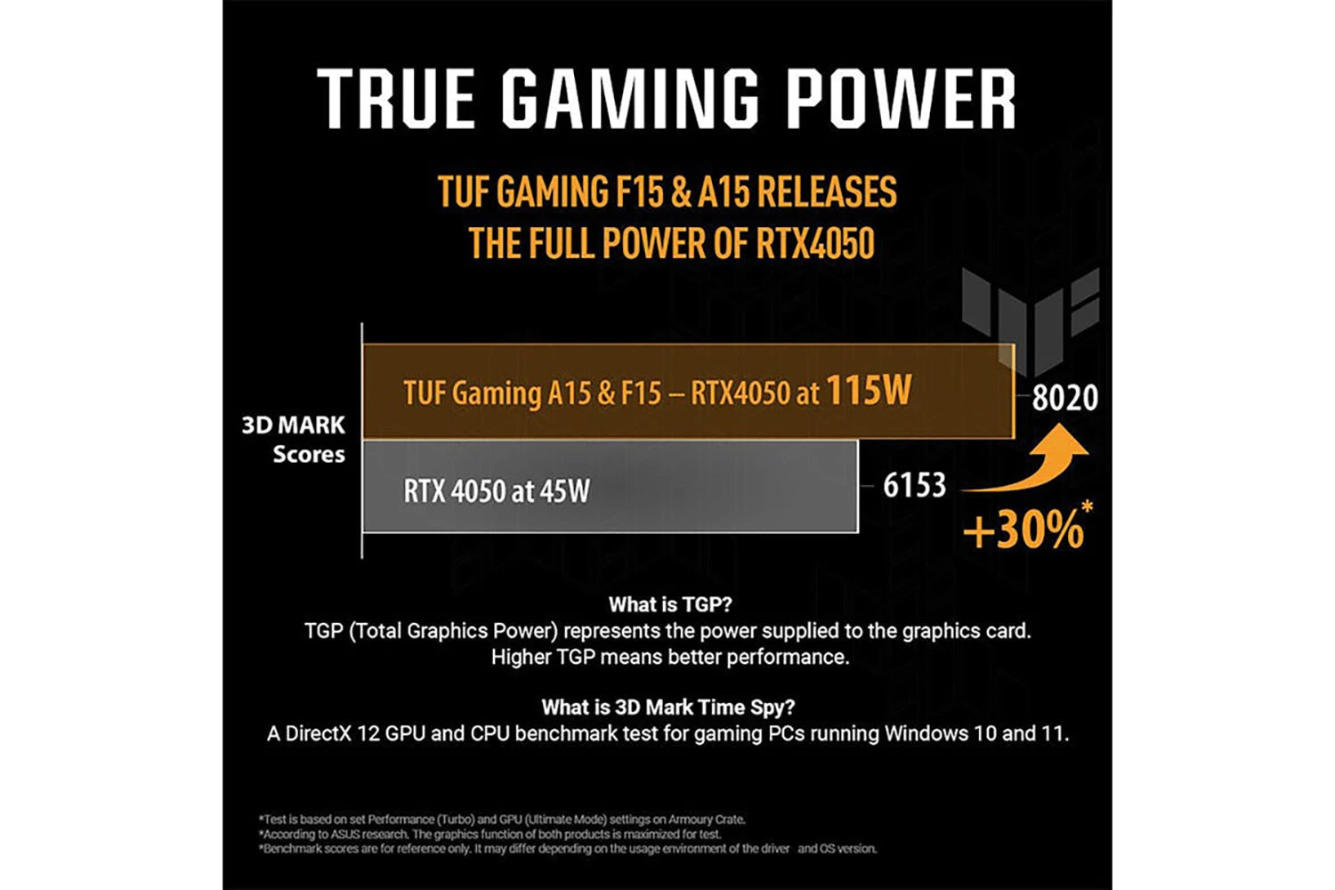 Jump right into the action with the TUF Gaming A15. Running Windows 11 out of the box with up to an AMD Ryzen 7 7435HS processor and up to 16GB of blisteringly fast 4800MHz DDR5 RAM, your streaming and multitasking are handled with ease. Leverage the full gaming performance of up to an NVIDIA GeForce RTX 4060 Laptop GPU with a dedicated MUX Switch. When your game library gets full, an empty M.2 NVMe SSD slot makes upgrading storage capacity a breeze.