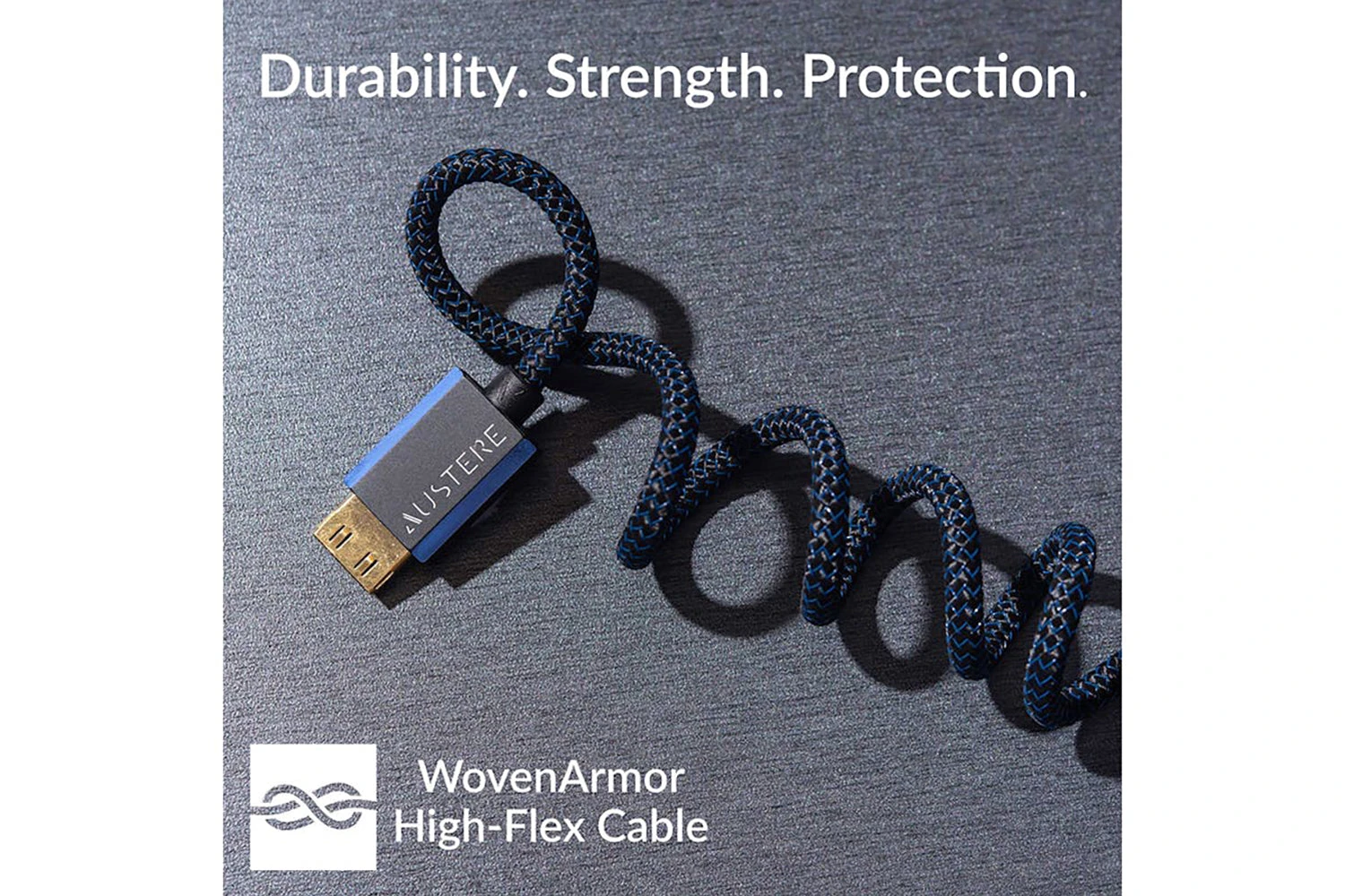 At Austere, we not only believe in the details; we obsess over them. Our WovenArmor Cable provides strength, durability, and protection to ensure a lifetime of quality performance. The High Flex Cable routes comfortably in tight places, and the purposefully slim connector is ideal for easy installation. The LinkFit Connectors ensure a locking connection to your devices.