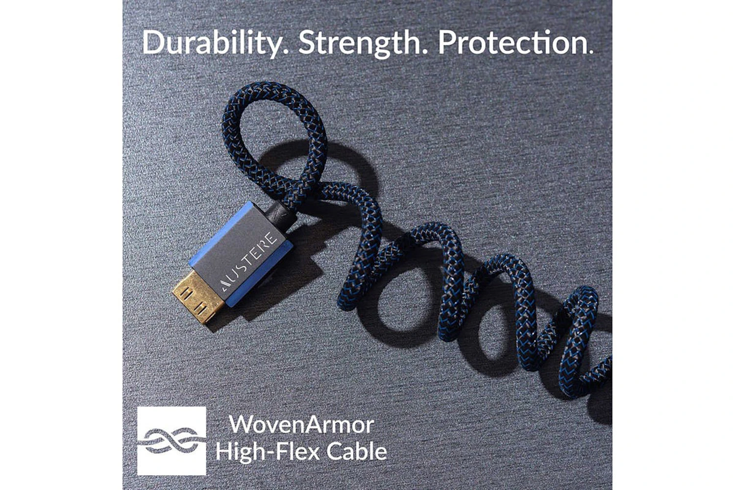 At Austere, we not only believe in the details; we obsess over them. Our WovenArmor Cable provides strength, durability, and protection to ensure a lifetime of quality performance. The High Flex Cable routes comfortably in tight places, and the purposefully slim connector is ideal for easy installation. The LinkFit Connectors ensure a locking connection to your devices.
