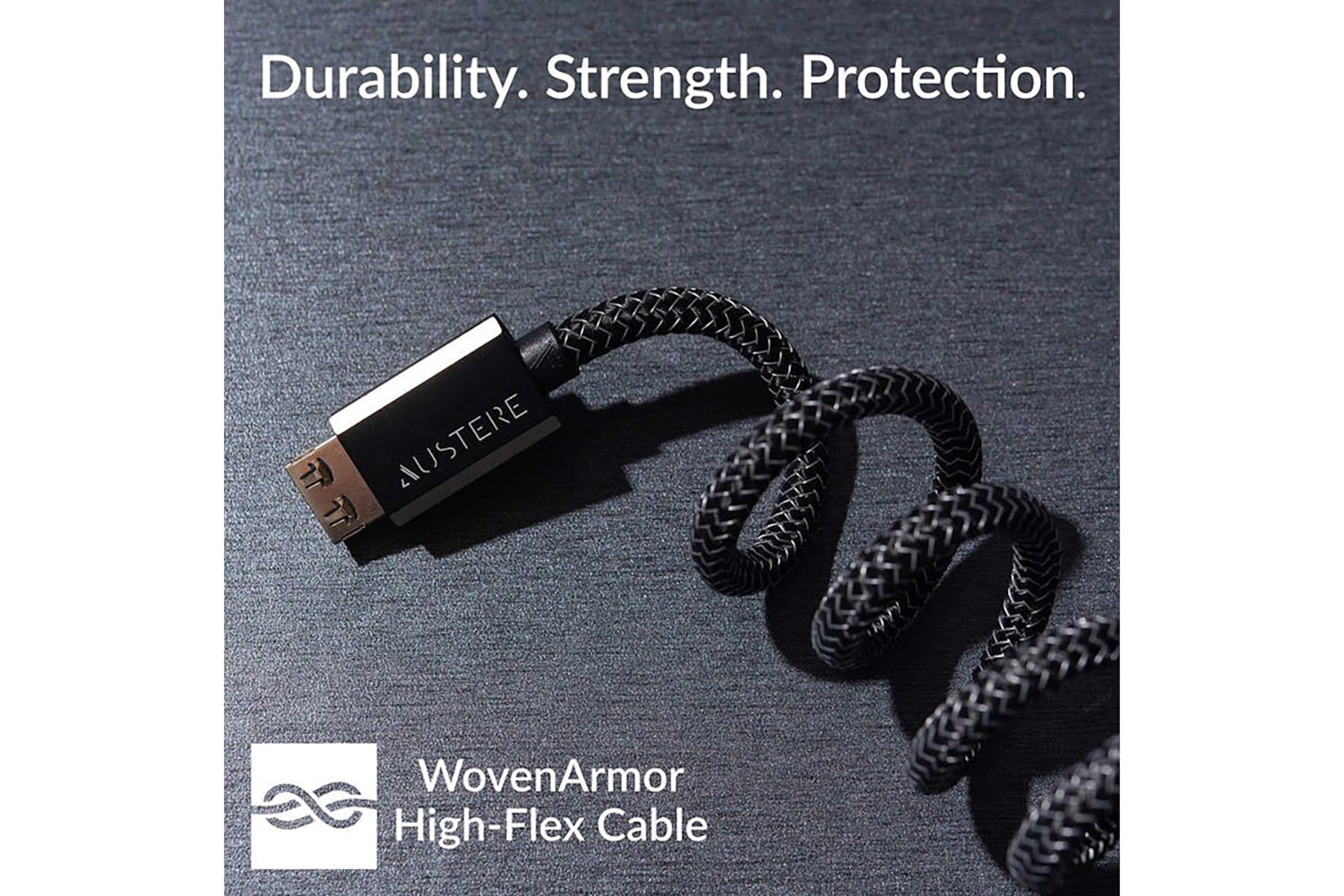 At Austere we not only believe in the details; we obsess over them. Our WovenArmor Cable provides strength, durability and protection to ensure a lifetime of quality performance. The High Flex Cable routes comfortably in tight places and the purposefully slim connector is ideal for easy installation. The LinkFit Connectors ensure a locking connection to your devices.