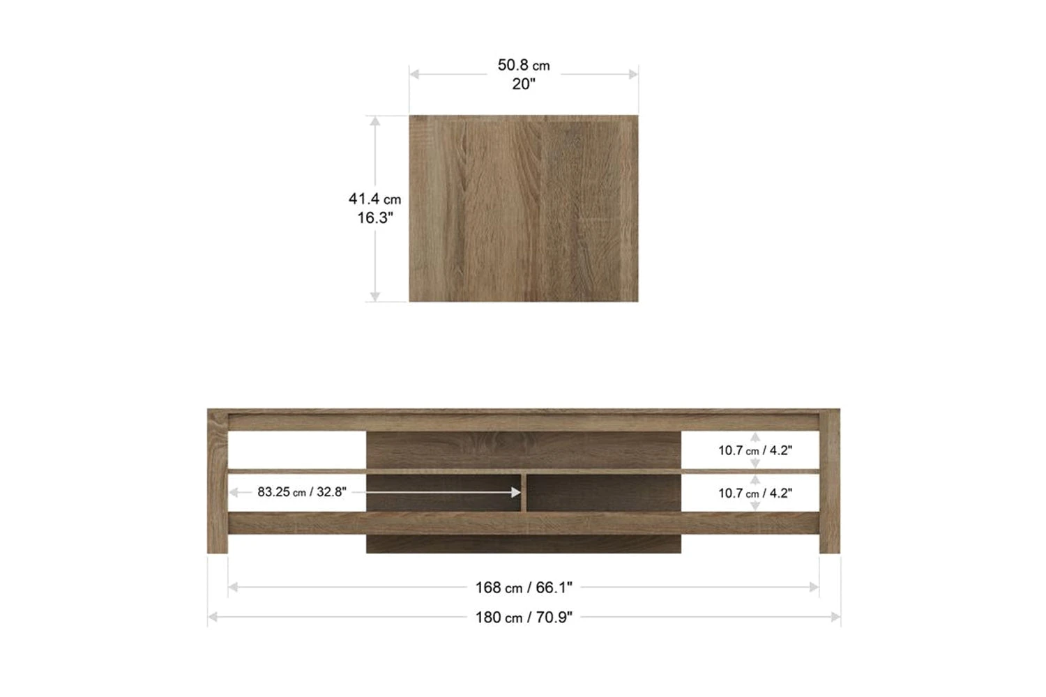 - Grey wood effect finish