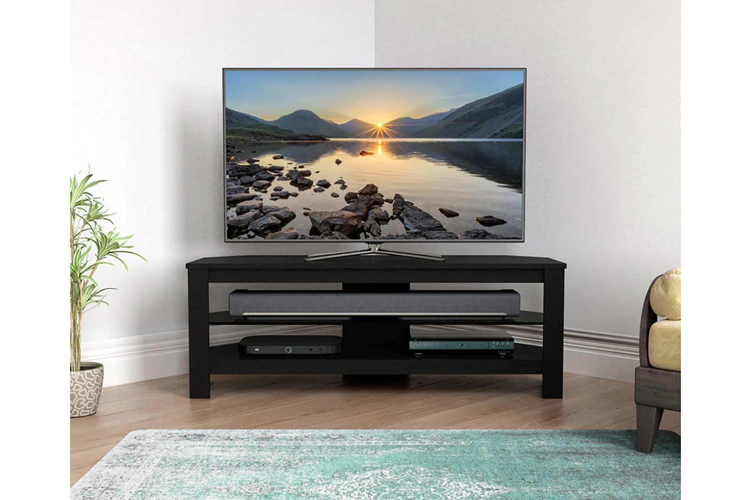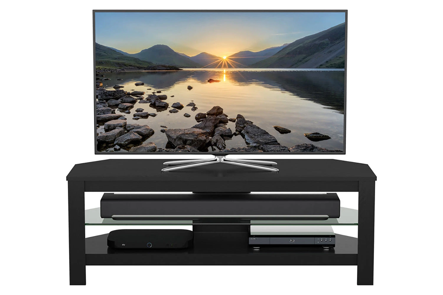 The Calibre is the perfect TV stand for TVs up to 55 inch 40kg, it’s minimalist design makes it a great piece of furniture for any room setting. Designed to fit equally well flat against a wall or in the corner of the room, providing ample space for your TV and home entertainment equipment.