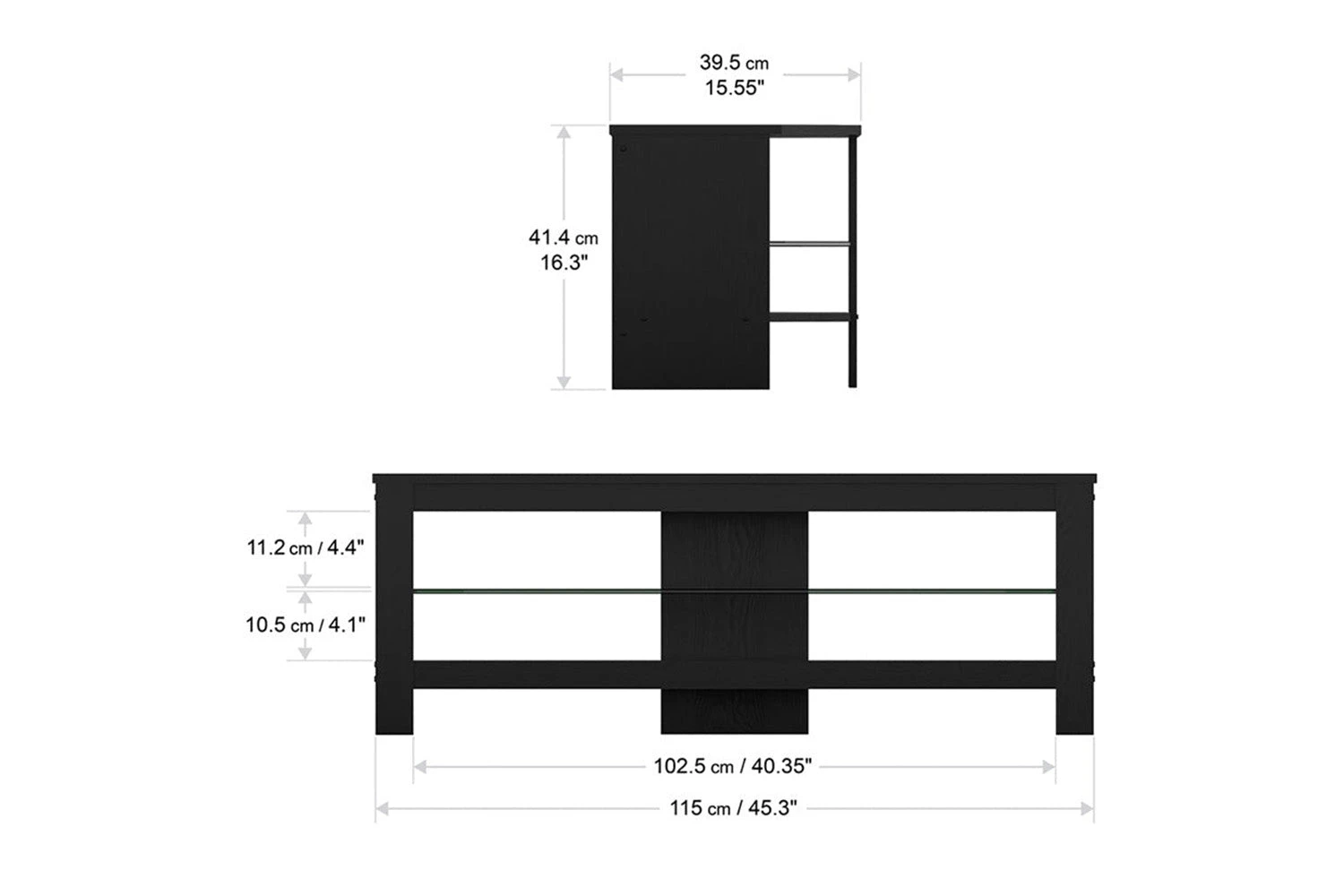 Sturdy construction, finished in a naturally attractive black oak wood effect veneer with a toughened glass shelf which provides an elegant way to support your consoles and media players.