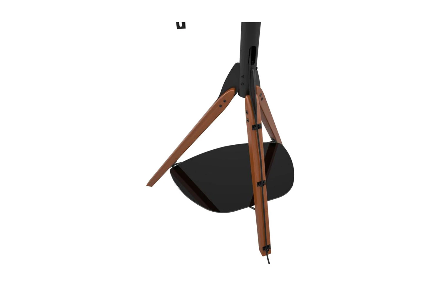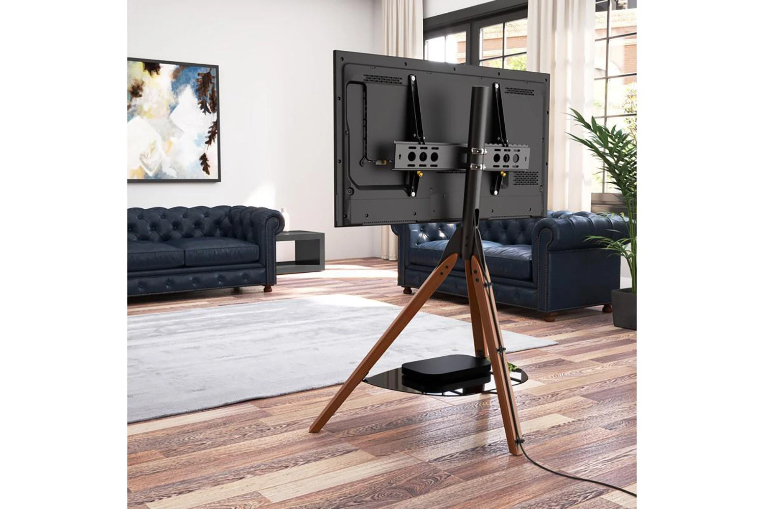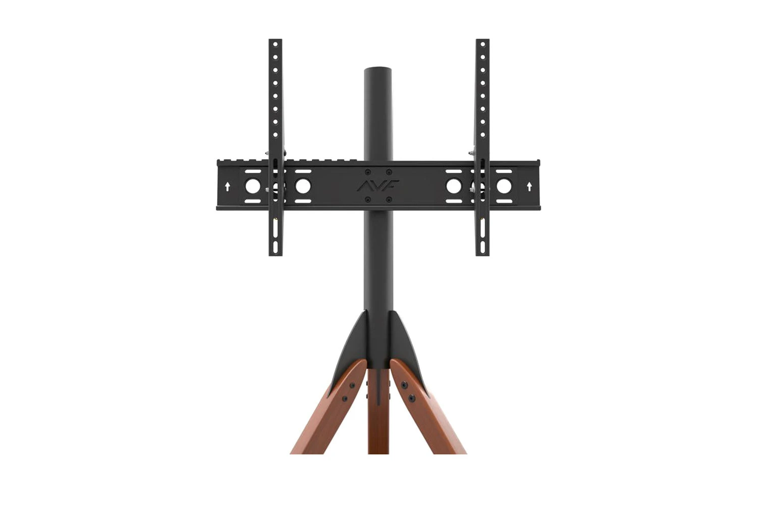 Featuring three dark wood legs with a single black safety glass shelf for media devices. This on-trend piece features AVF TV mounting technology with 15 degrees of easy no tools adjustable tilt, perfect for avoiding light glare and reflections.