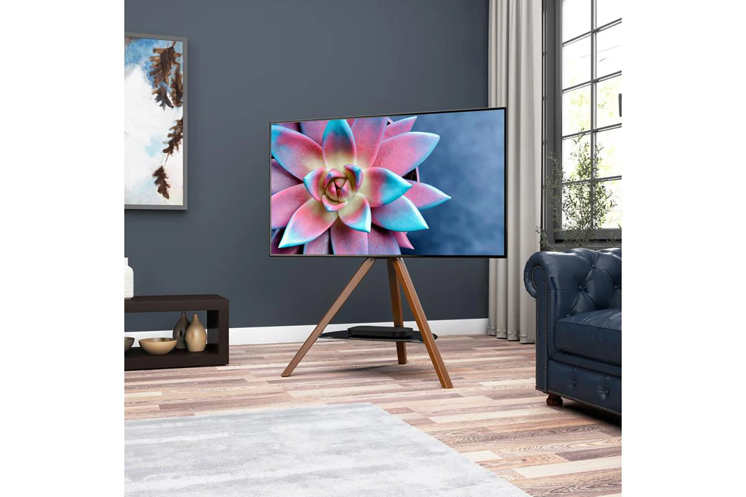 The AVF Hoxton Tripod TV Stand balances a sophisticated minimal look with exceptional strength and stability. Suitable for 32 to 70 inch screens weighing up to 40kg/88lbs, the stand utilises a clever laid back design to ensure weight is positioned centrally, making Hoxton completely free-standing and allowing it to be positioned virtually anywhere.