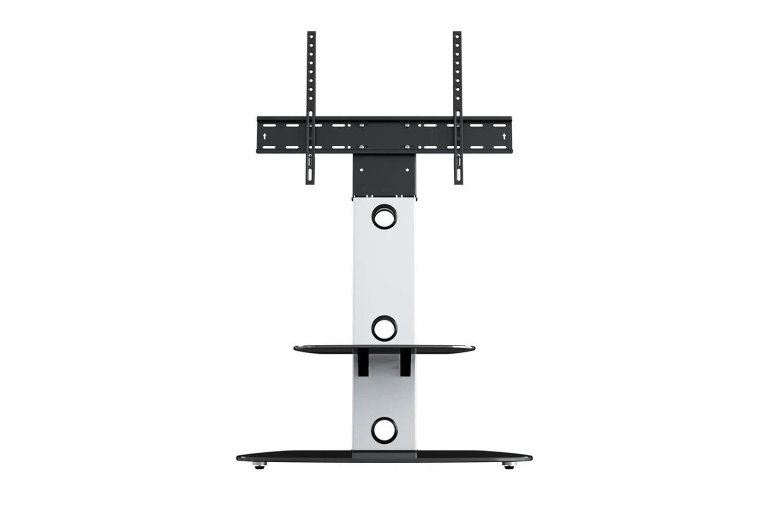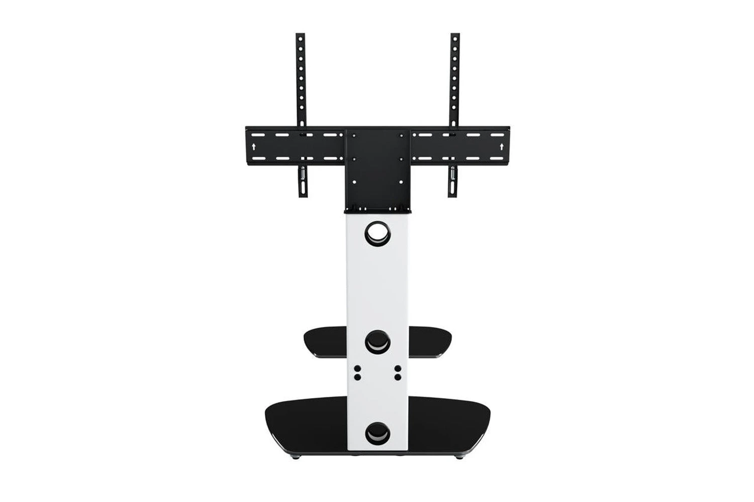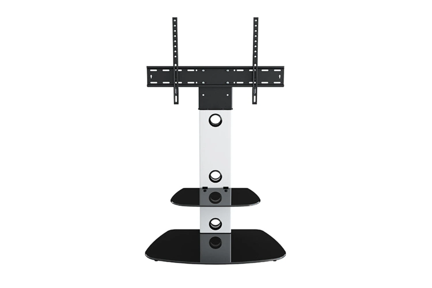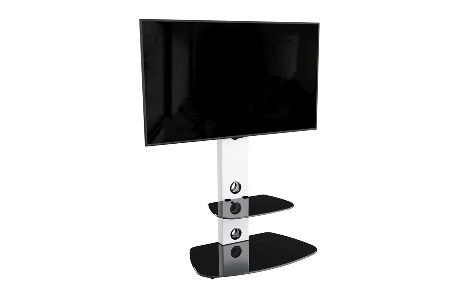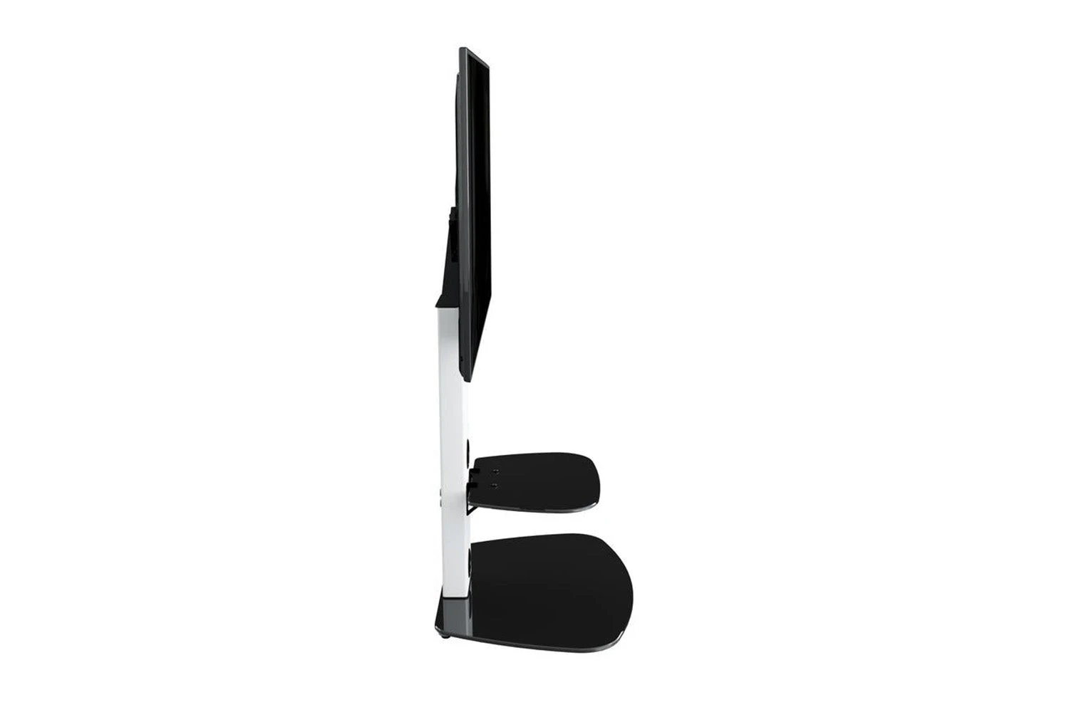 The Lucerne is a sleek satin white TV floor stand with a black floating tempered glass shelf and base, that easily blends into any room. Suitable for TVs 32-65” and up to 40kg in weight, it’s also shaped to fit perfectly in a corner or against a flat wall. The integrated cable management within the column allows the cables can be easily hidden from view. Featuring secure AVF mounting technology, you can easily protect your TV from accidental knocks or tip overs.