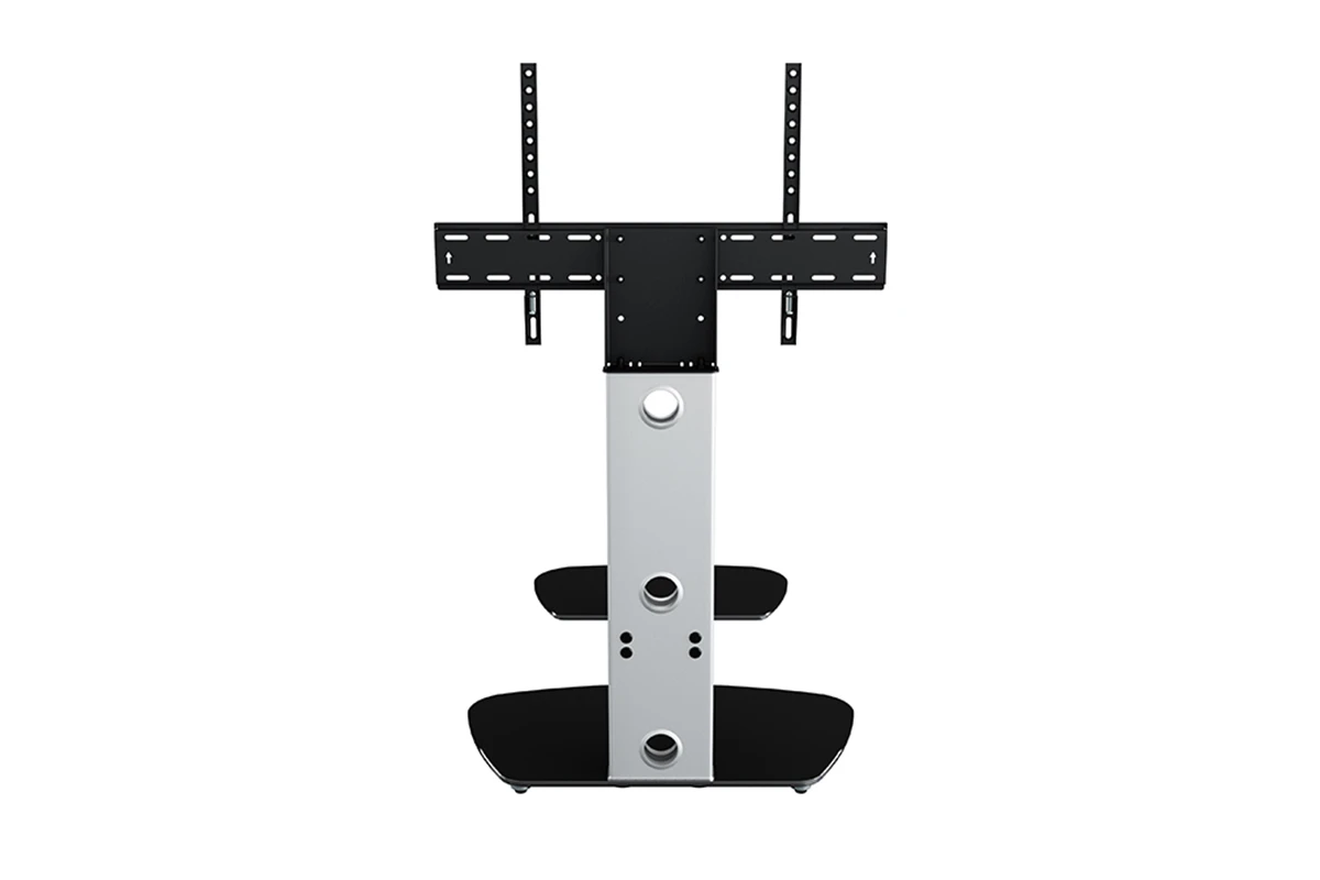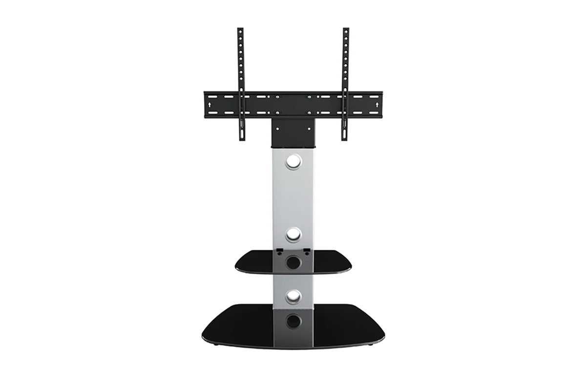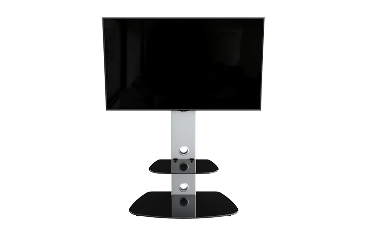 The Lucerne is a sleek silver TV floor stand with a black floating tempered glass shelf and base, that easily blends into any room. Suitable for TVs 32-65” and up to 40kg in weight, it’s also shaped to fit perfectly in a corner or against a flat wall. The integrated cable management within the column allows the cables can be easily hidden from view. Featuring secure AVF mounting technology, you can easily protect your TV from accidental knocks or tip overs.
