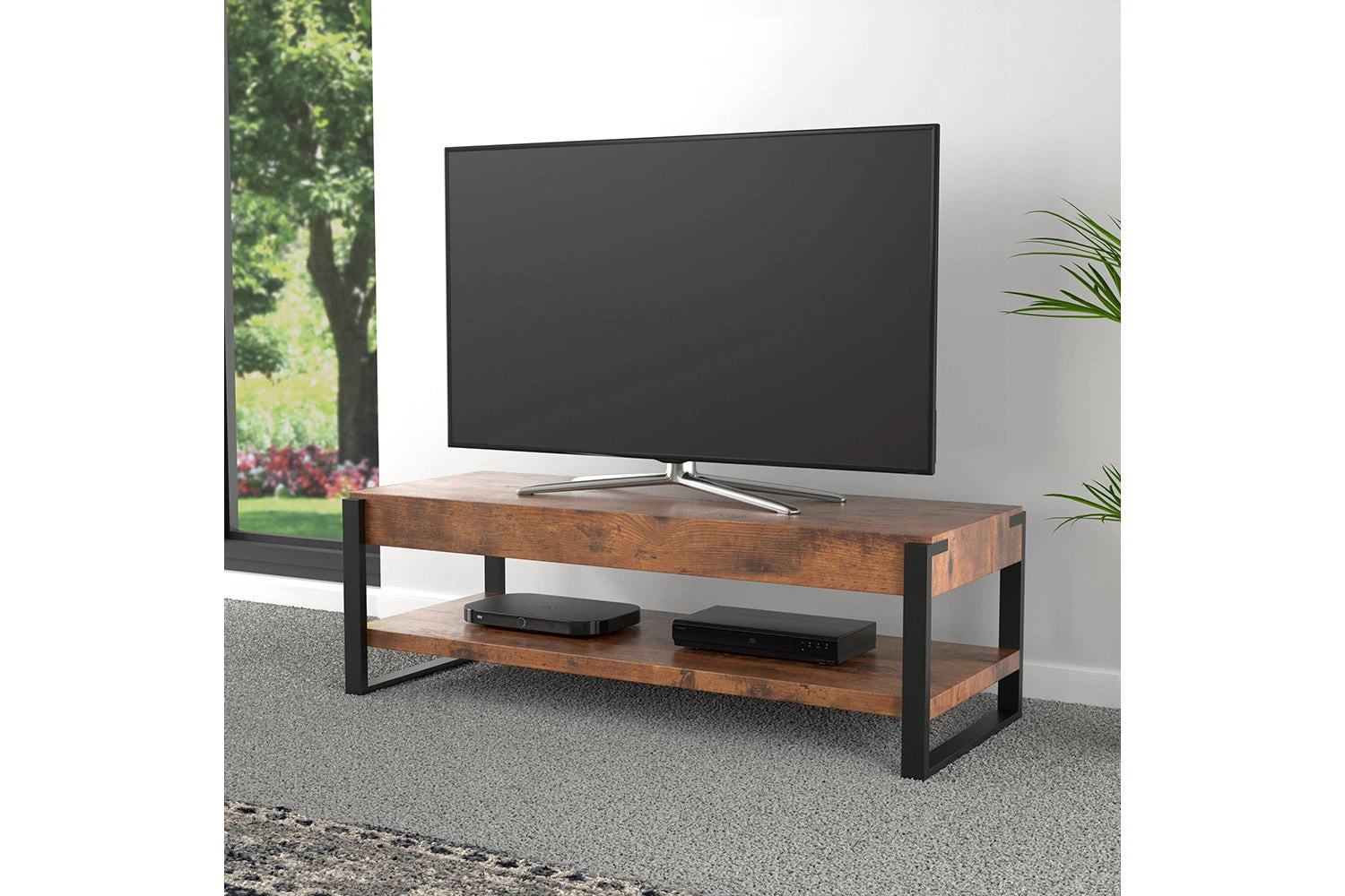 This 1.2m TV stand is perfect for TVs up to 60 inches and 45kg, with a chunky rustic wood effect lower shelf perfect to house all of your AV accessories, the series also includes a matching coffee table, side table and desk which can double up as a console or side board.