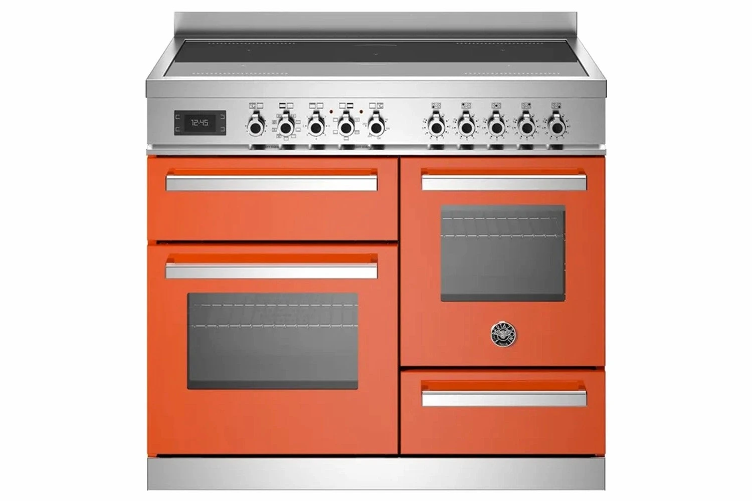 The triple oven range cooker give great versatility and style to your kitchen. The main oven electric oven has 11 functions, from convection, baking and grilling to warming and displays the oven functions selected, manages time during cooking and gives feedback on real-time temperature. The useful auxiliary oven has six modes. Triple-glass doors minimise heat loss.