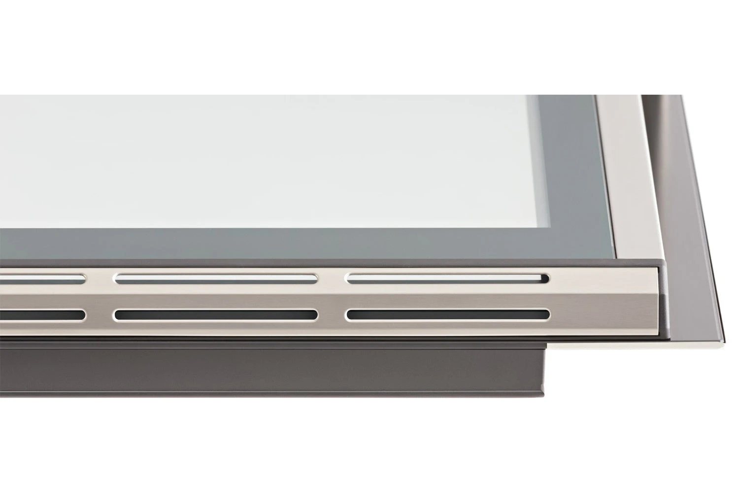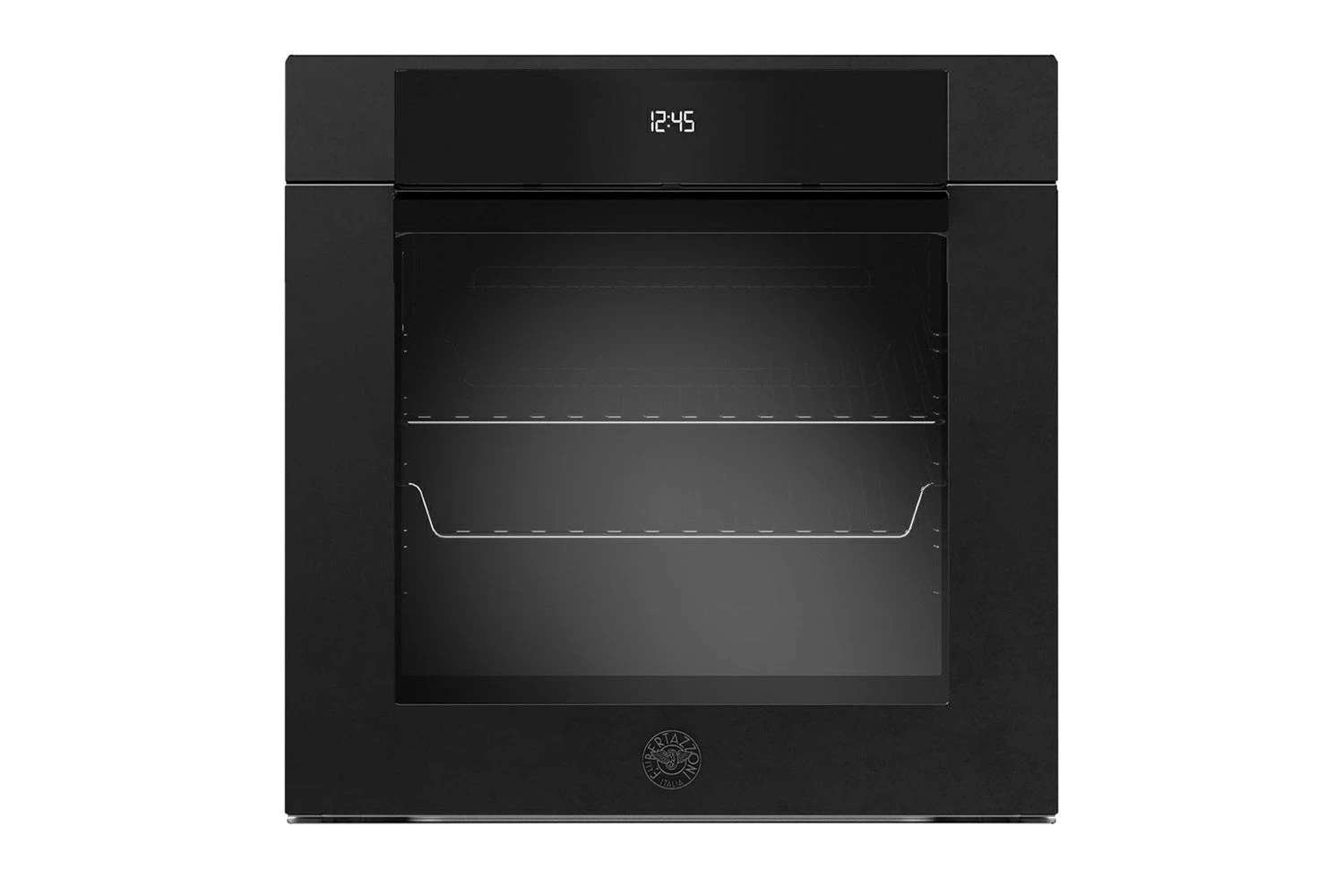 The Bertazzoni Modern Series 60cm built-in electric oven has a 76 litre capacity best-in-class cavity. With 11 functions it is ideal for mid-to low- temperature cooking, such as baking or recipes that require slow cooking, like casseroles. The non-convection mode is excellent for baking cakes, while the fan-assisted mode ensures even heat distribution on all five levels for roasting and baking with no flavour crossover. The oven is easily managed with the full touch black glass control panel with LCD display. The soft open-and-close door is safe and easy to use, fitted with a smart glass-finish handle. The door is quadruple-glazed for safety and energy efficiency. Available in Carbonio.