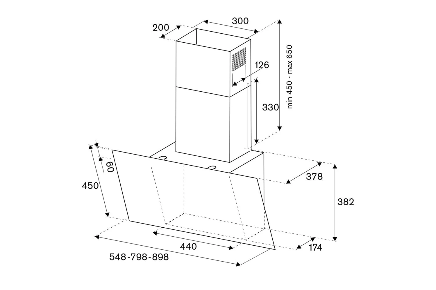 This Bertazzoni Modern Series 90cm vertical inclined hood is finished in black glass. It has a single motor offering three speeds and effective aluminium filters. Touch controls make it easy to adjust and two bright LED lights make it easy to see what you are doing on the hob. The powerful motor extracts 700 m3h max and is rated A+ energy class.