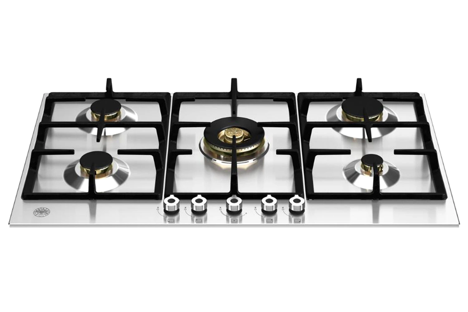 This Bertazzoni Professional Series 90cm gas hob is finished in stainless steel. With five brass burners and accurate metal control knobs, it makes cooking simple, versatile and precise. A central dual wok 5kW ring adds another dimension to your cooking. The cast iron pan support is solid and secure for safe use. Available in stainless steel and matt black.