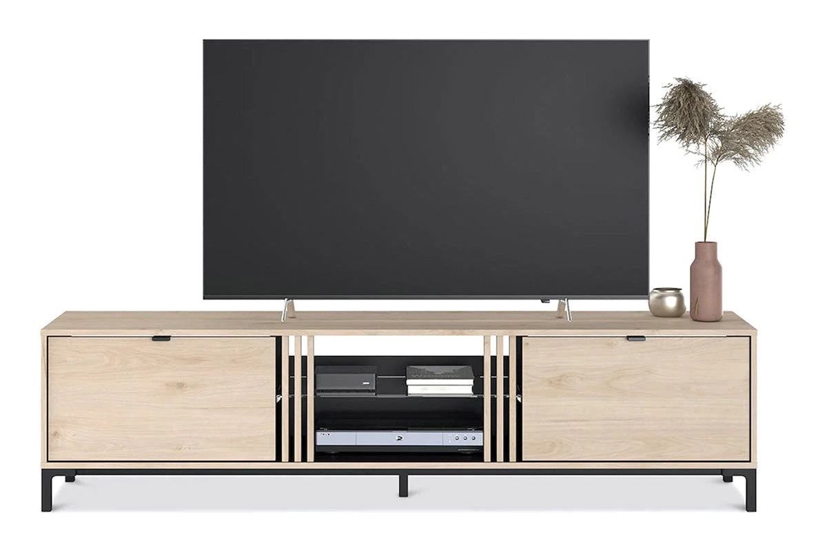 The spacious top has more than enough room for your TV and sound system, while two large drawers are ideal for any accompanying accessories. The middle section is split in two by a glass shelf, which is perfect for your TV box and games console.