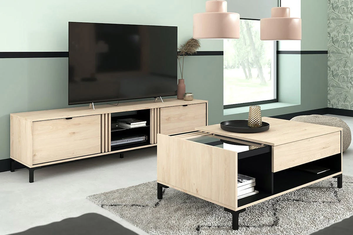 With its clean lines and light oak and dark combination finish, the Boho TV unit is ideal for those looking for a trendy and contemporary piece of furniture to house their home entertainment system.