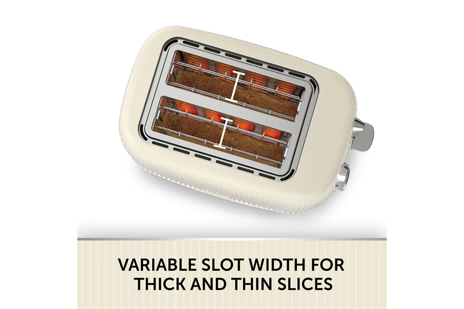- Variable width bread slots allow for both thick and thin slices