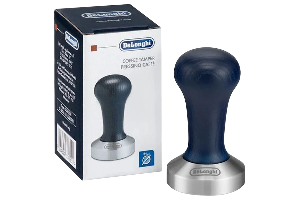 Tamping is the action of press the coffee grounds into a pod of coffee in the filter cup prior to extraction. When you learn to reproduce the right pressure you will get the best possible espresso everytime. The best results are obtained using De’Longhi Calibrated coffee tamper to give the right pressure to ground coffee into the filter. Stainless steel base with natural wood handle 51 mm diameter Suitable for pump espresso machines.