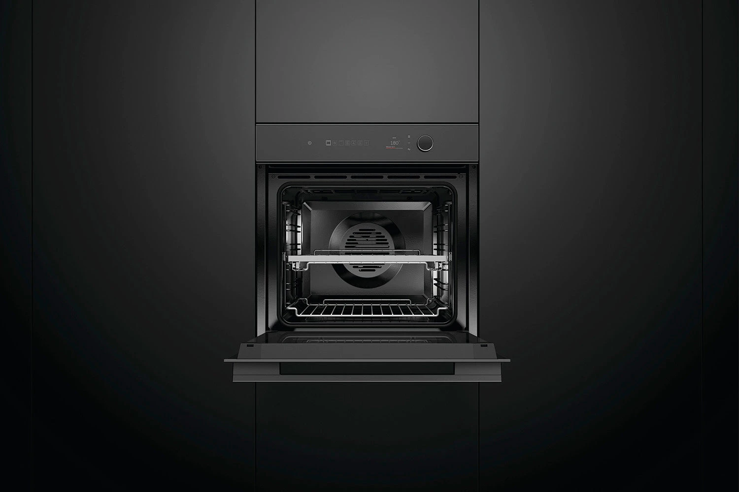 Designed to blend seamlessly into the kitchen, this Minimal style oven features subtle textural and tonal contrasts. Available in a black or grey finish to support a considered kitchen design.