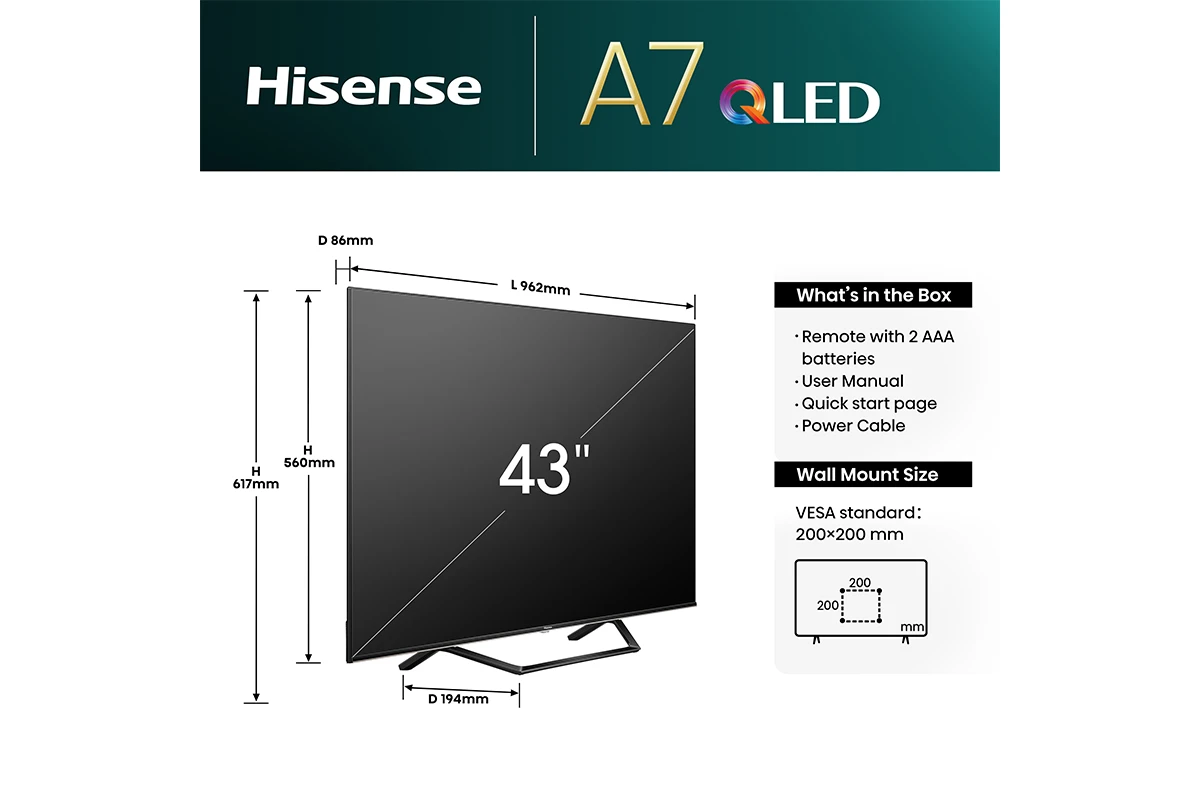 Powered by the latest VIDAA Smart platform it offers the most intuitive, fully customisable and secure OS, allowing you to watch your favourite content your way. Access all the entertainment you love from Disney+, Netflix, Prime Video, YouTube, and many more.