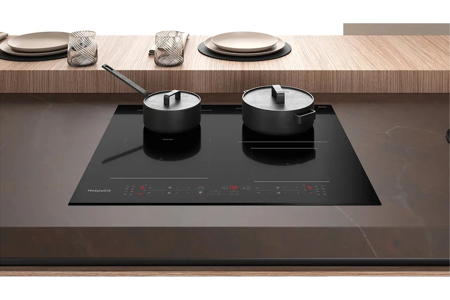 Move your pot or pan from one zone to another without any changes in heat levels. You can cook with two pans on the Flexi Duo space, or cover the entire surface with an extra large pot.