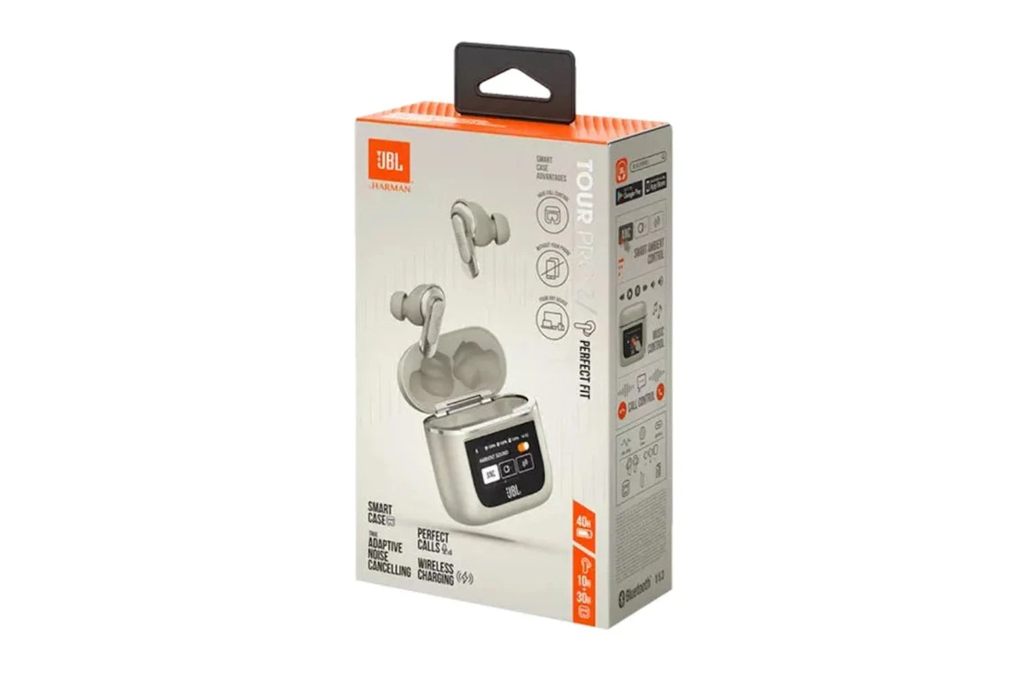 The JBL Tour Pro 2’s True Adaptive Noise Cancelling technology tunes out distractions so you can enjoy your favorite audio—or even the sound of silence—all powered by legendary JBL Pro Sound and immerse yourself in superb, spatial audio on the go.