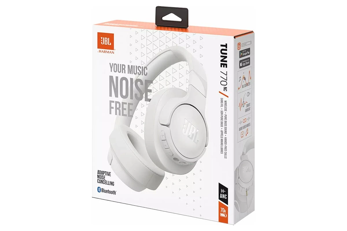 When your music is on, nothing else matters. The JBL Tune 770NC Adaptive Noise Cancelling wireless headphones deliver on that promise all day—and longer, while sparing you the unwanted noises. With up to 70 hours of battery life, you’ll easily get through a busy week of using them and still have enough JBL Pure Bass Sound to get you through the weekend. And if you do need a quick recharge, 5 minutes gets you an extra 3 hours of music. Lightweight, and flat-folding, the JBL Tune 770NC can also connect with two Bluetooth devices simultaneously, so you’ll never miss a call while watching a movie on your tablet. With the free JBL Headphones app, you can tailor the sound to suit your taste. And voice prompts in your language will guide you through the features. Manage your calls and your voice assistant hassle-free right from your phone and use VoiceAware to hear yourself when you’re speaking. Just choose the color that best suits your vibe, and start having fun.
