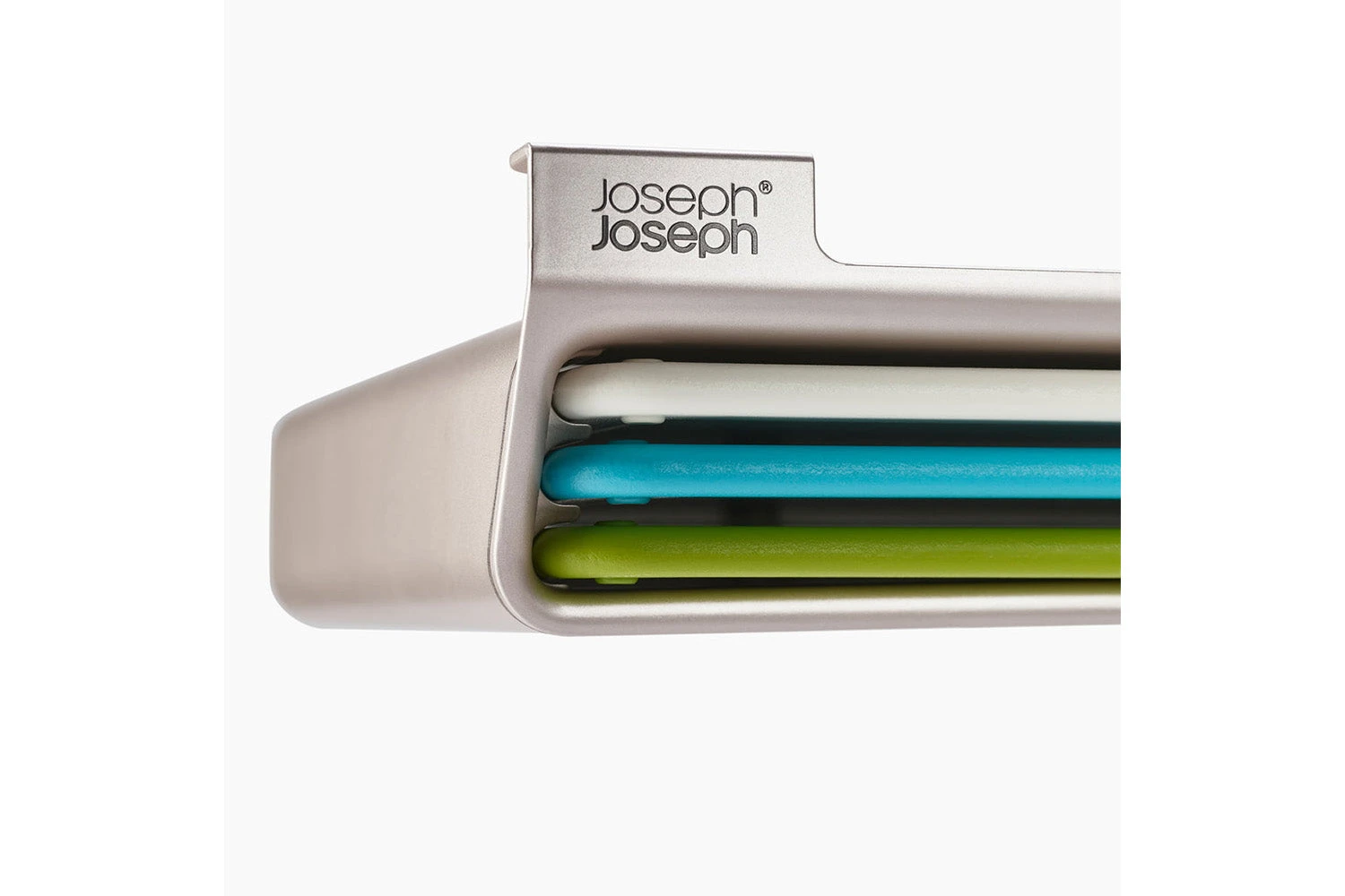 Chopping boards are a daily essential in the kitchen, but for those who prefer to keep the worktop clear of clutter, Folio™ Slim presents a new way to store them. This innovative set, which includes three colour-coded and knife-friendly chopping boards, features a slimline storage case that – wait for it – hooks onto the shelf for space-saving storage, keeping your chopping boards off the worktop and within easy reach.