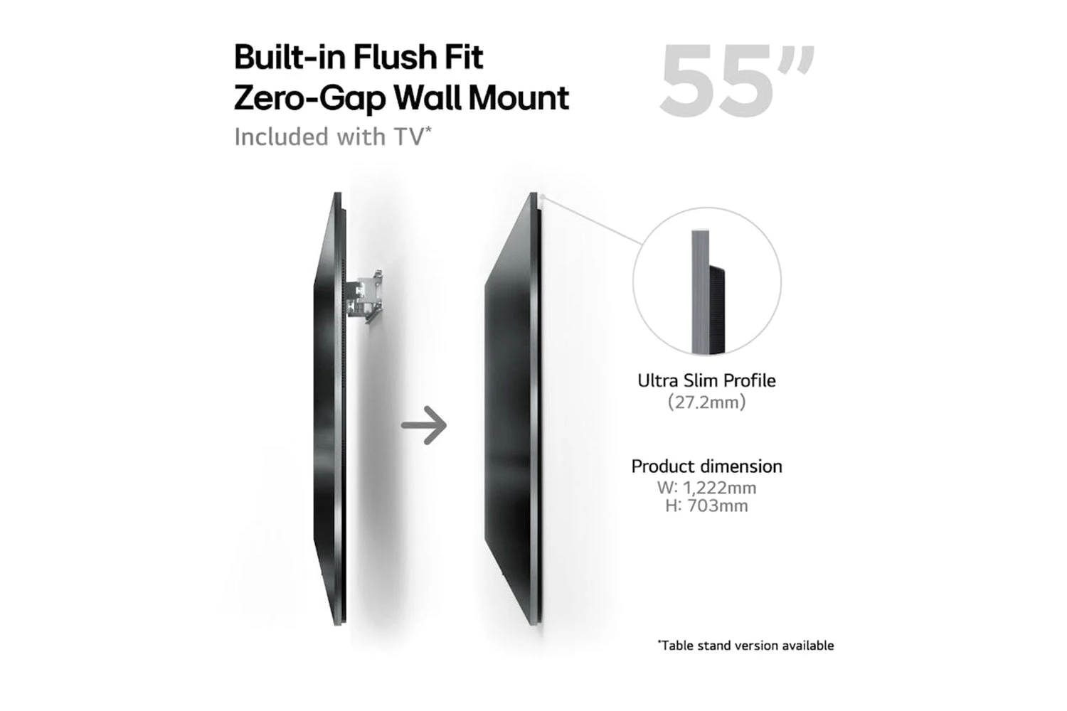 - One wall design that merges seamlessly against the wall with a zero gap mount