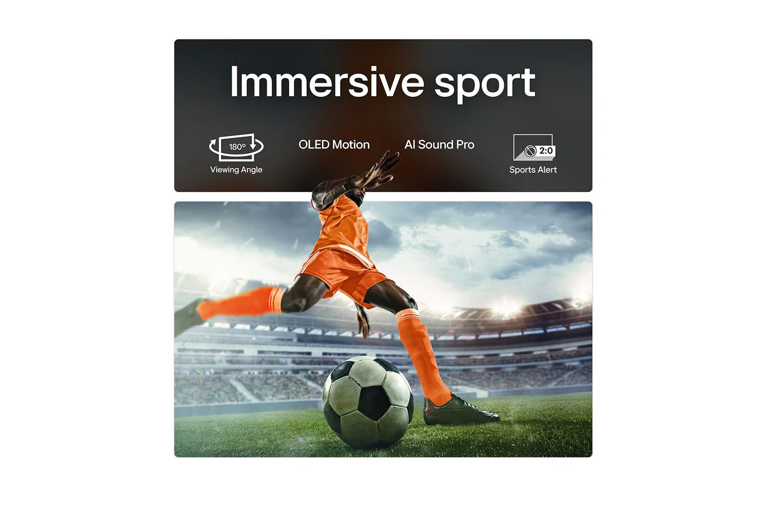 AI Super Upscaling and OLED Dynamic Tone Mapping analyze each frame’s elements to enhance resolution, brightness, depth, and clarity.