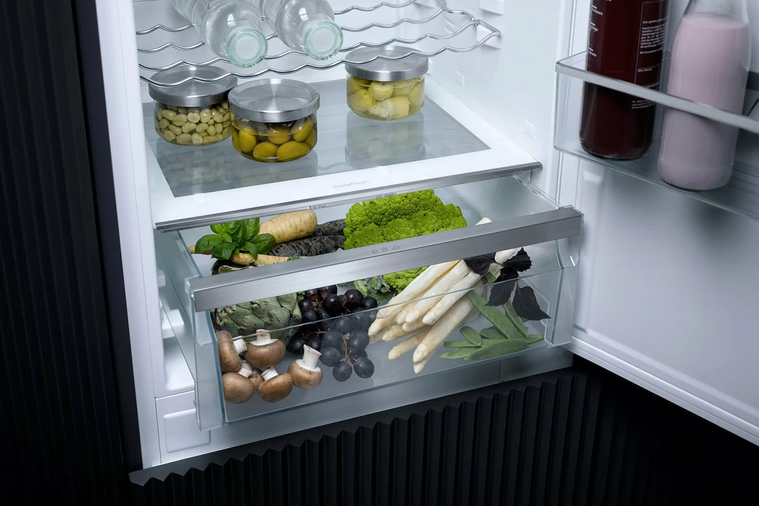 The shelves in the inner door of your Miele refrigerator can be adjusted easily to suit whatever you’re storing – whether that means tall bottles or short jars. They keep everything in its right place.