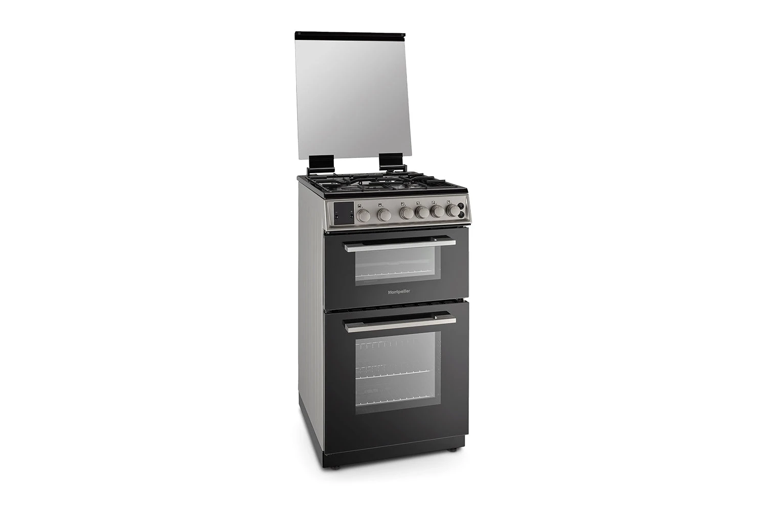 This all-new contemporary is a 50cm wide double gas cooker with four cooking zones on the hob, two ovens and grill.