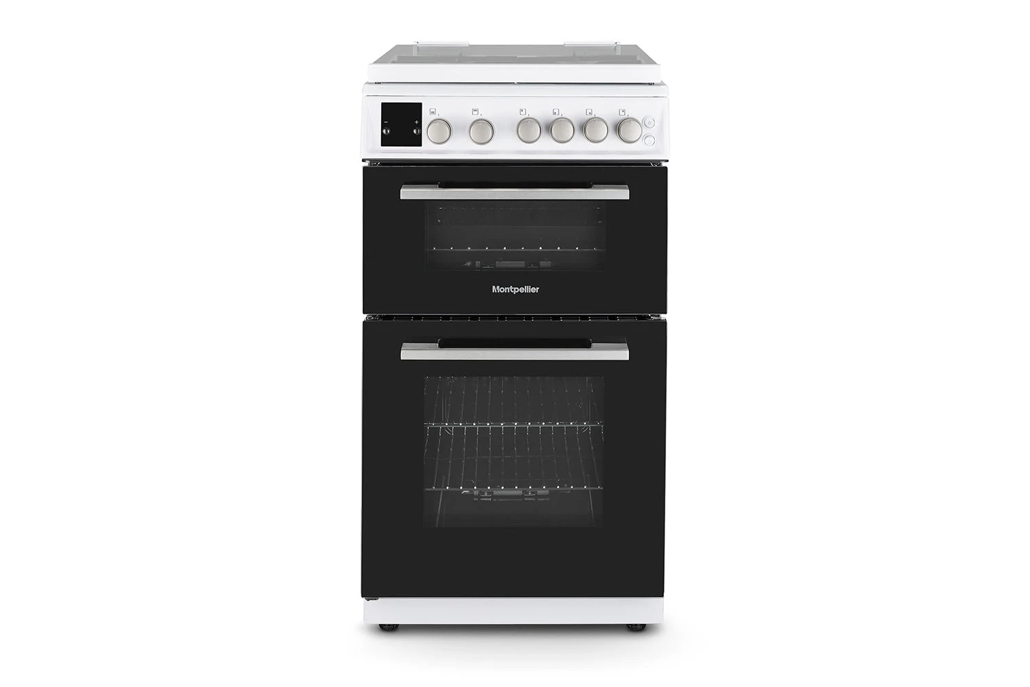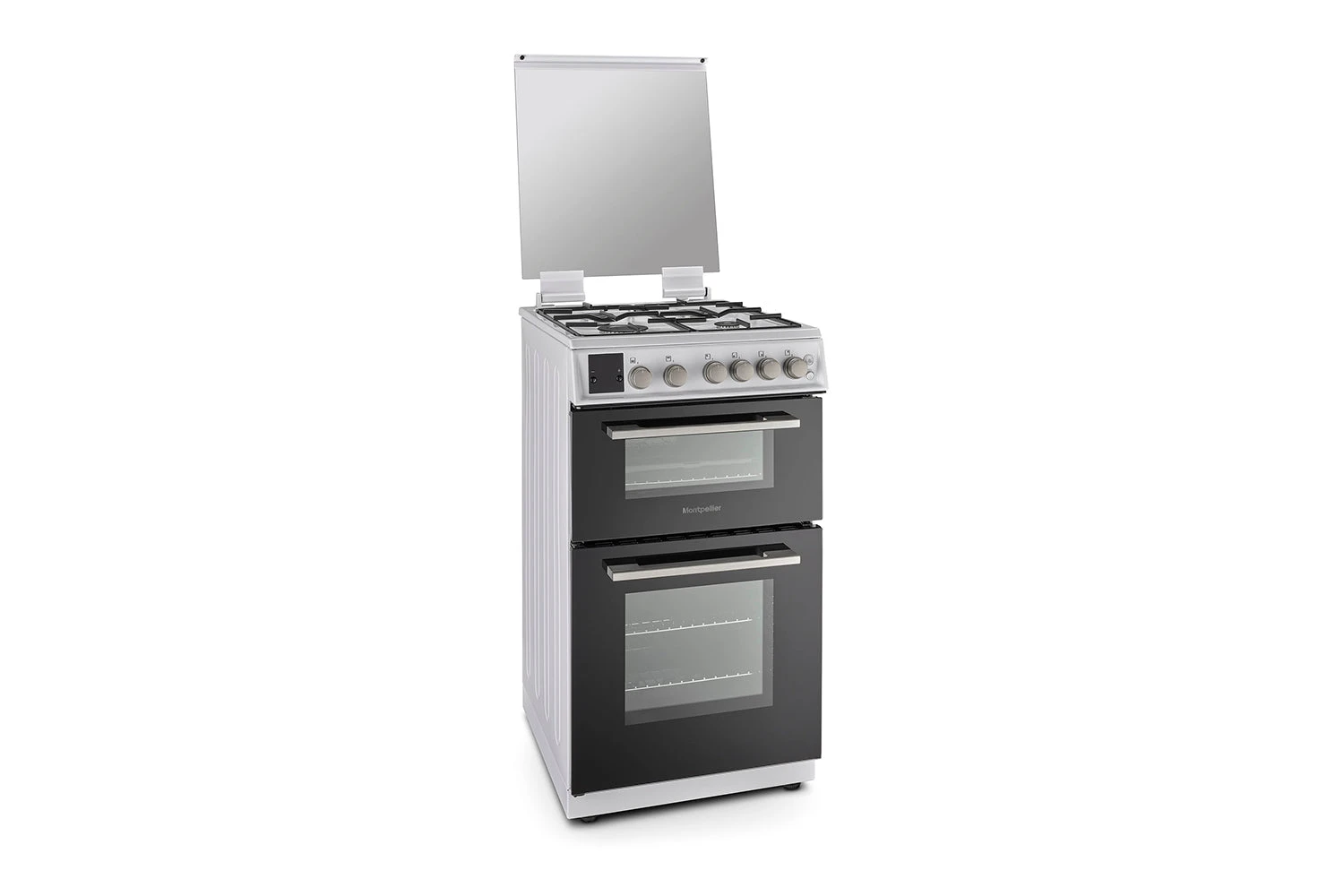 This all-new contemporary is a 50cm wide double gas cooker with four cooking zones on the hob, two ovens and grill.