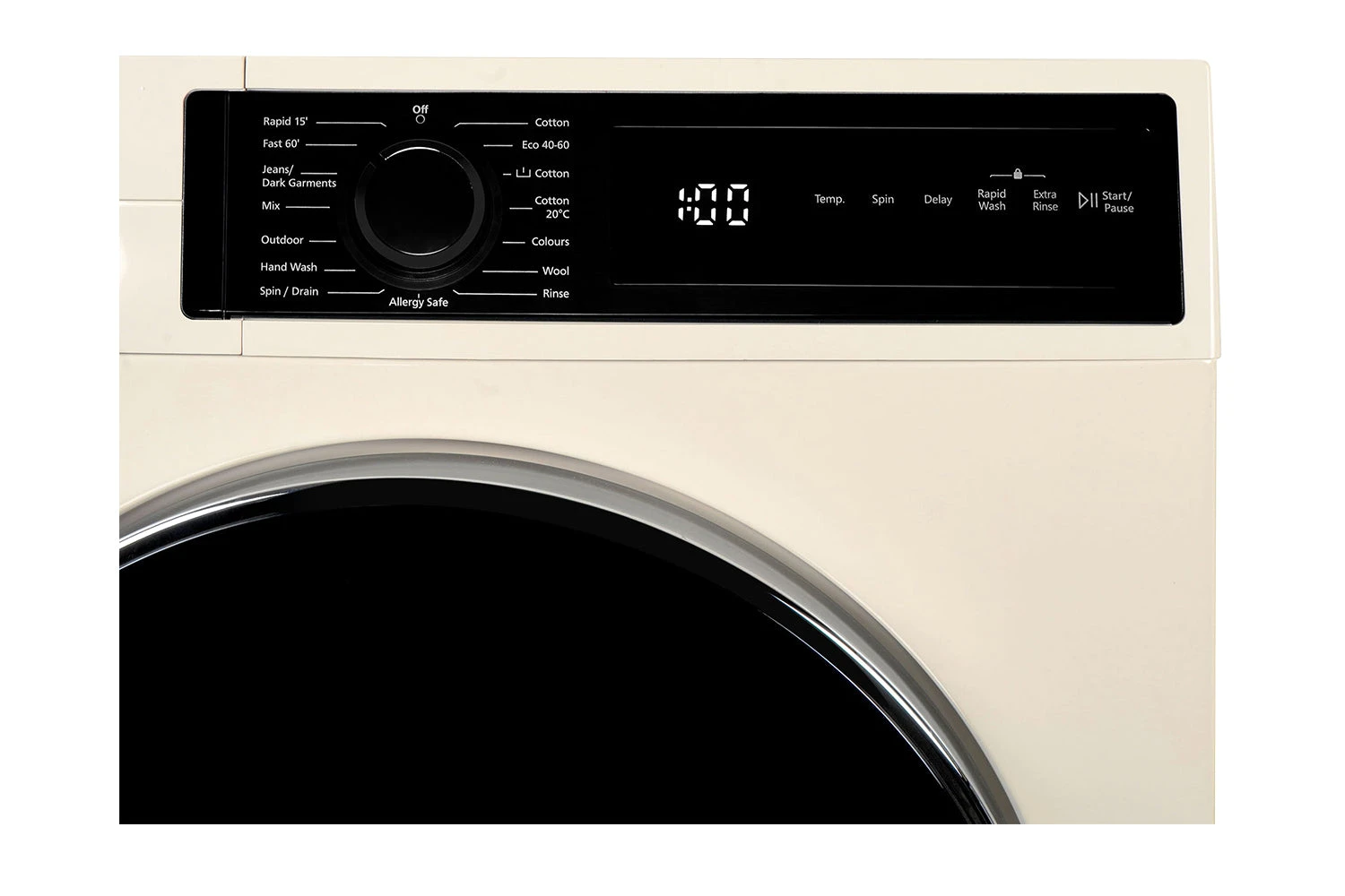 The Montpellier 8kg cream washing machine MWM814BLC is a powerhouse designed to meet the demands of even the busiest households. Its capacity and hardware make it the perfect appliance to power through laundry.