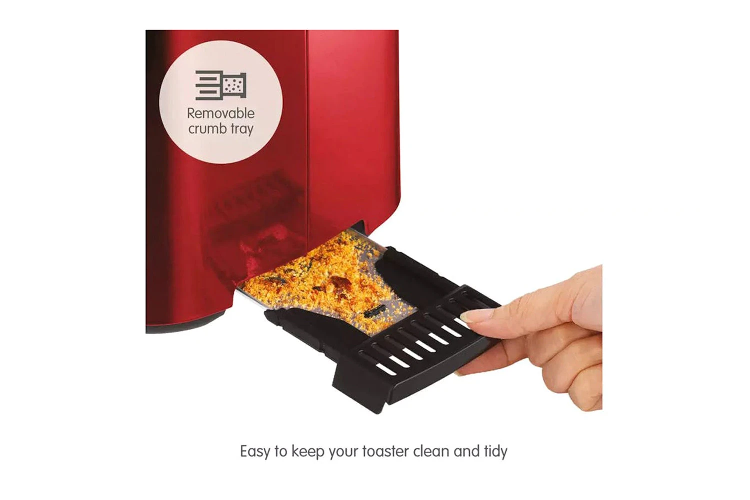 - Removable crumb tray and tidy cord storage