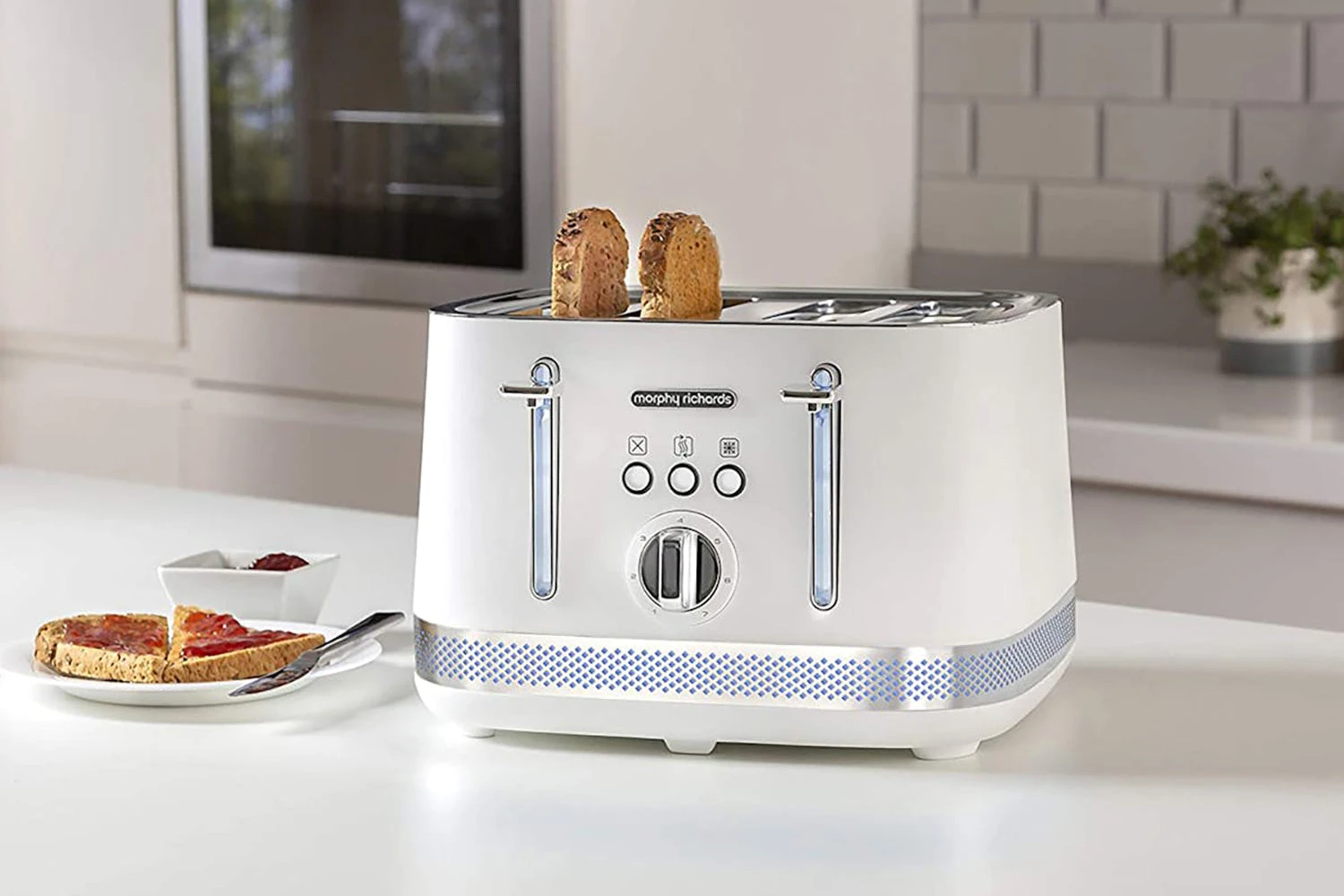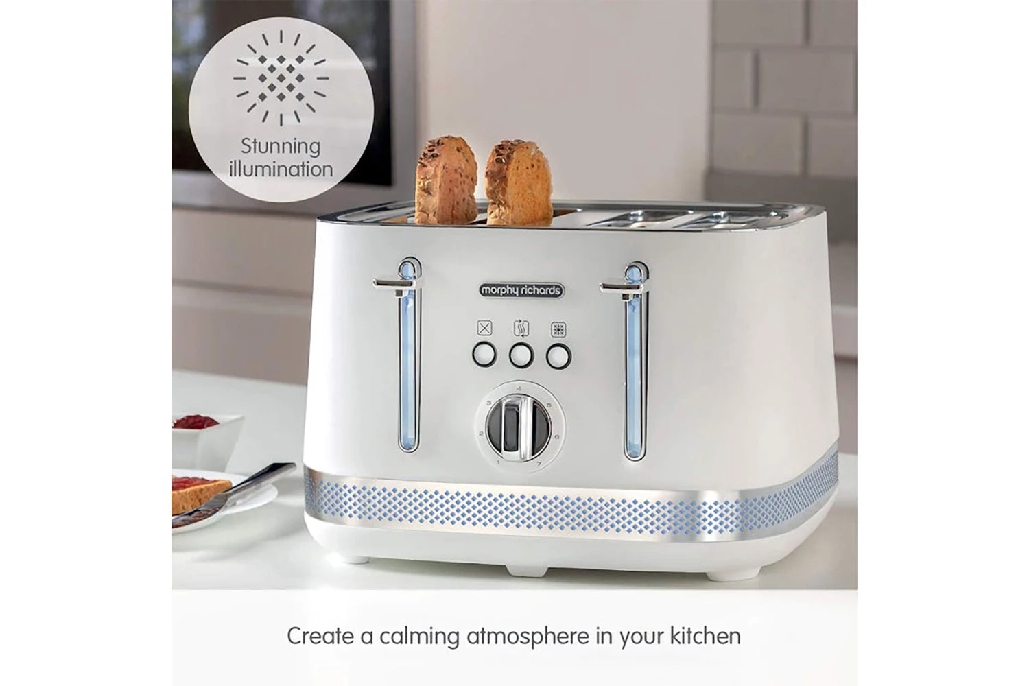 Illumination 4-Slice Toaster, an attractive and stylish kitchen accessory that will shine as a centrepiece of your kitchen counter.
