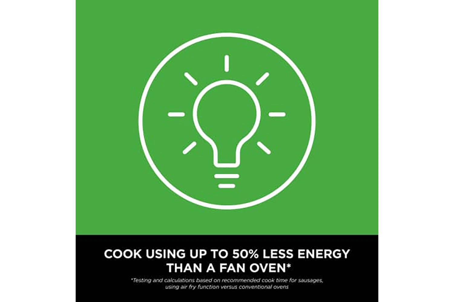*Testing and calculations based on recommended cook time for sausages, using air fry function versus conventional ovens.