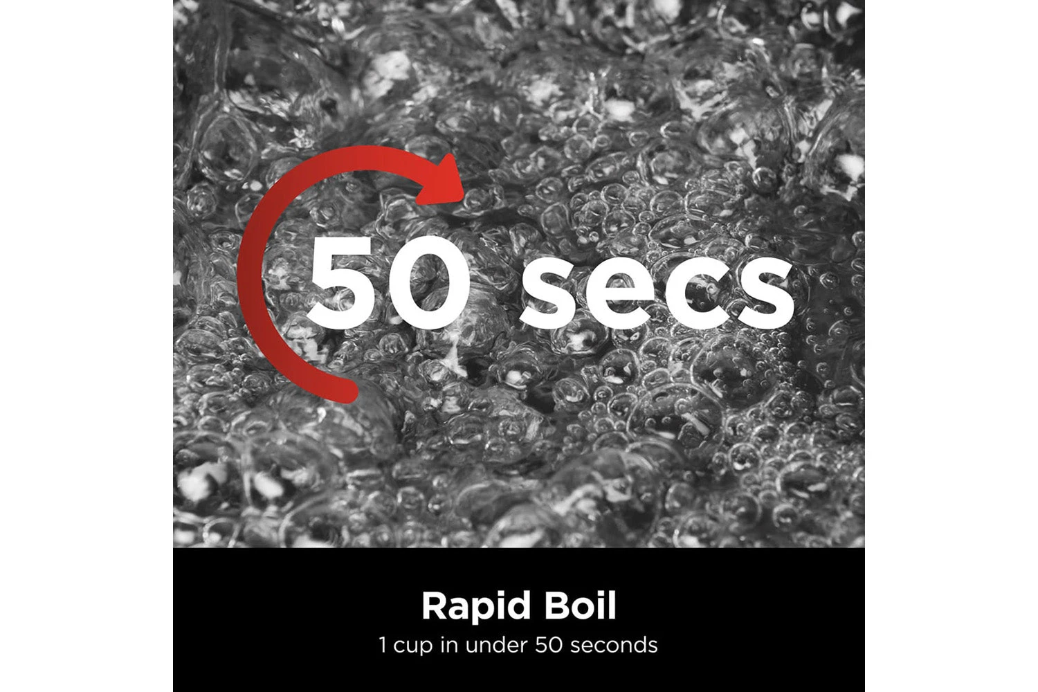 Quickly boil 1 cup in under 50 seconds. This fast boil kettle features 3000W of power and a large 1.7L capacity – enough for 7 cups of tea or coffee.