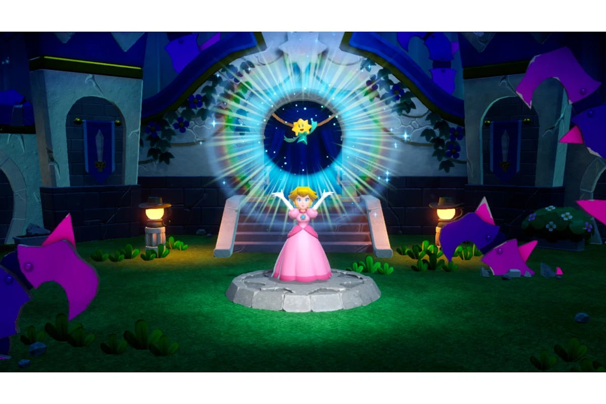 The stage is set for adventure at the Sparkle Theater, host to a slew of stolen shows for you to save and an outfit shop for you to customise Peach’s look!