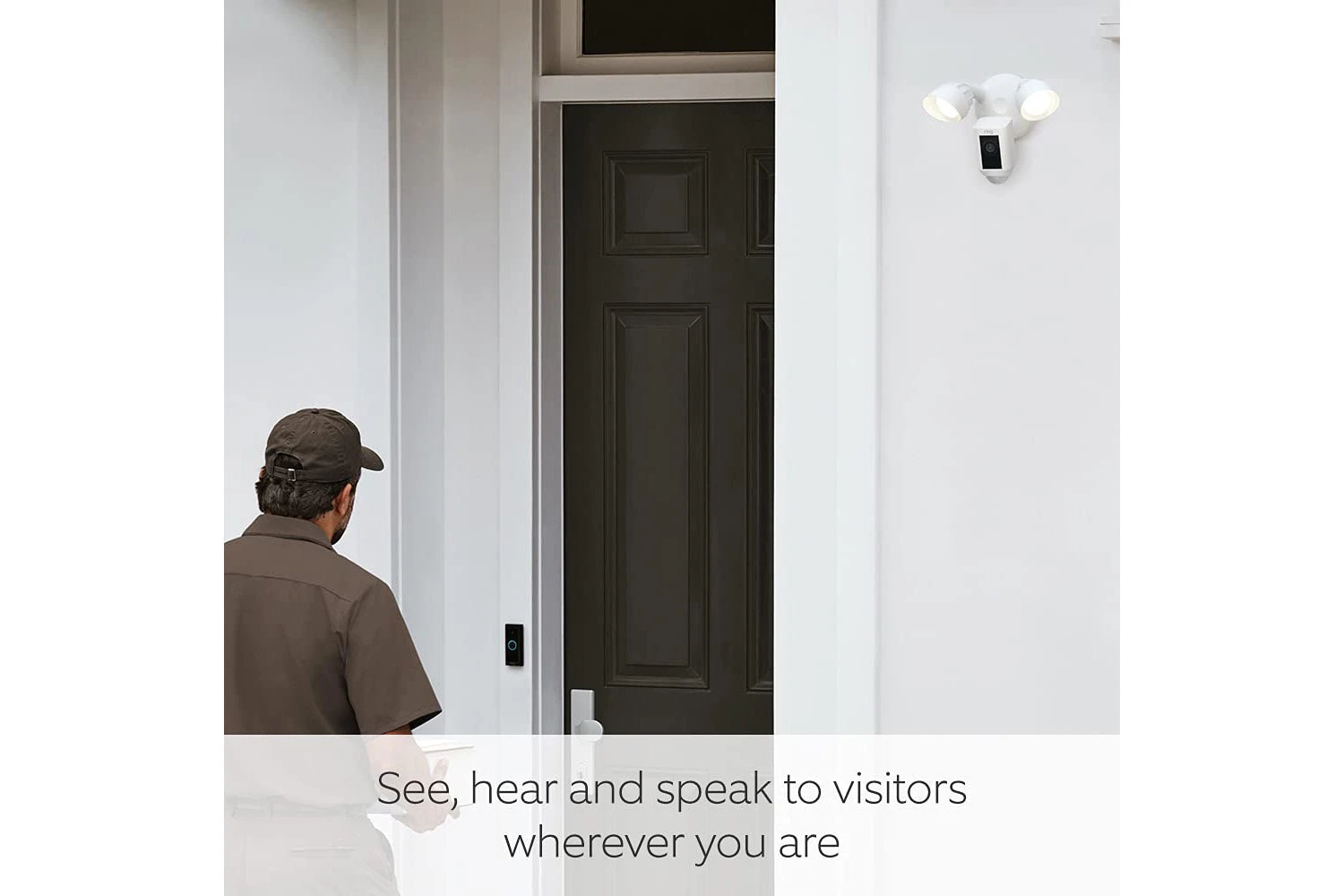 See and speak to visitors from wherever you are, even after dark, with Two-Way Talk, 1080p HD Video and LED floodlights with brightness control. Activate the security siren in the Ring app if you need to alert others in an emergency.