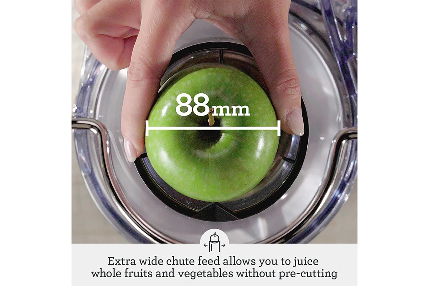 - Extra large feed chute: 88mm feed chute caters to whole fruits and vegetables