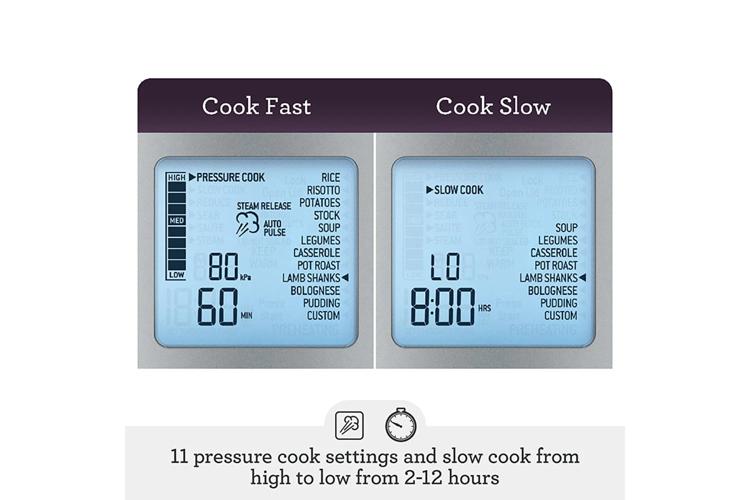 - 11 Pressure cook settings plus a custom setting to suit your favorite recipes