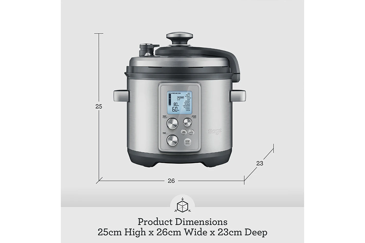 Full feedback LCD display tells you whats going on inside the pot with a pressure indicator, temperature and countdown timer and steam release indicator. 8 pressure levels range from 1.5 psi to 12 psi.