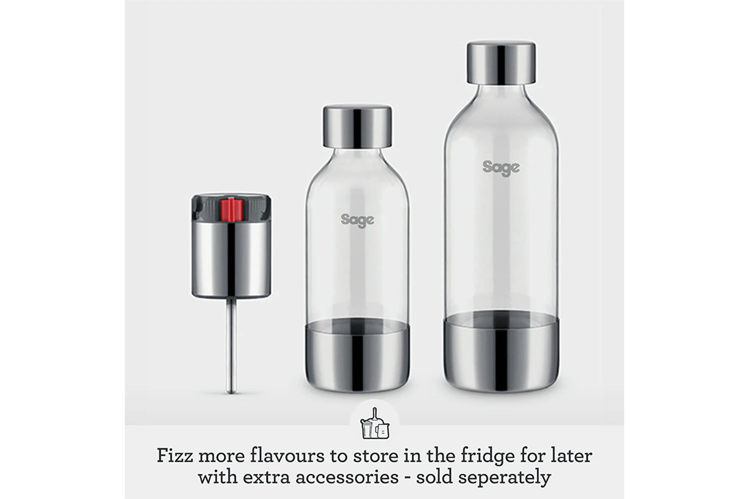 Extra available accessories for the InFizz Fusion include the FusionCap, the 0.6L bottle 2 pack and 1L bottle 2 pack, which are sold separately. More bottles means you can fizz more flavours to store in the fridge for later.