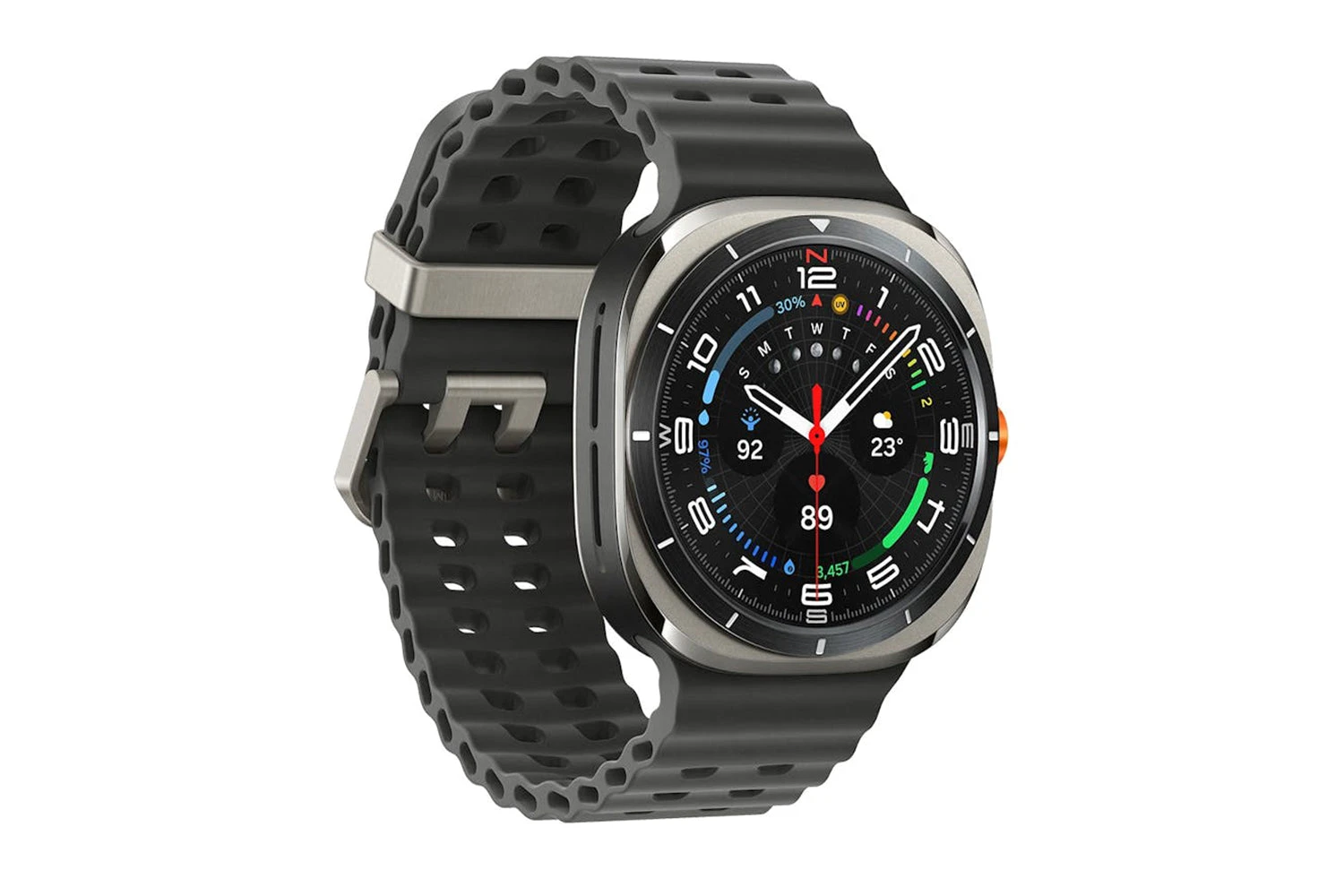 Our most accurate GPS ever on Galaxy Watch keeps you on course, even through densely packed buildings. Incorporating both L1 and L5 frequency bands, Galaxy Watch Ultra tracks you with pinpoint accuracy. [8, 23, 24, 25]