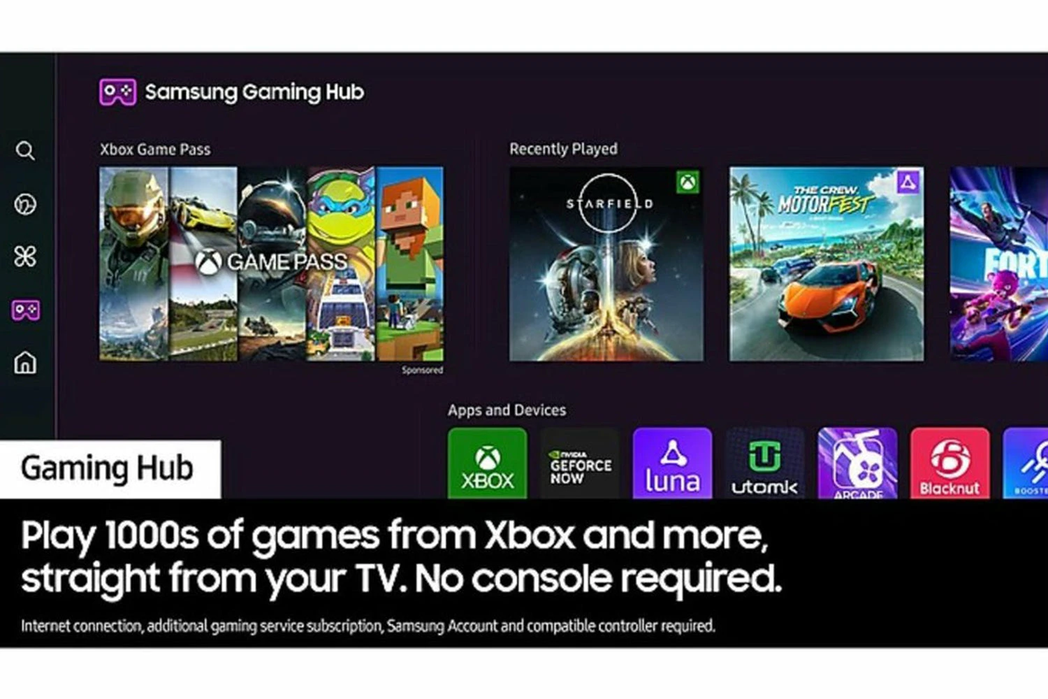 Samsung Gaming Hub brings together the biggest console and streaming games from Xbox and other industry- leading partners, all in on one place. With no downloads, storage limits or console required, just turn on your TV and play.