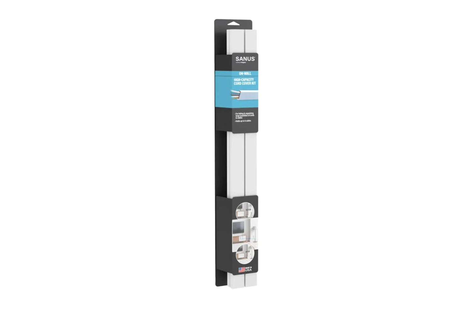 Eliminate cord clutter for your mounted TV to give your installation a sleek, finished look. This large capacity cable organizer kit is perfect to conceal multiple cords, cables and wires. Easy to install and paint the covers to customize to your home entertainment setup.