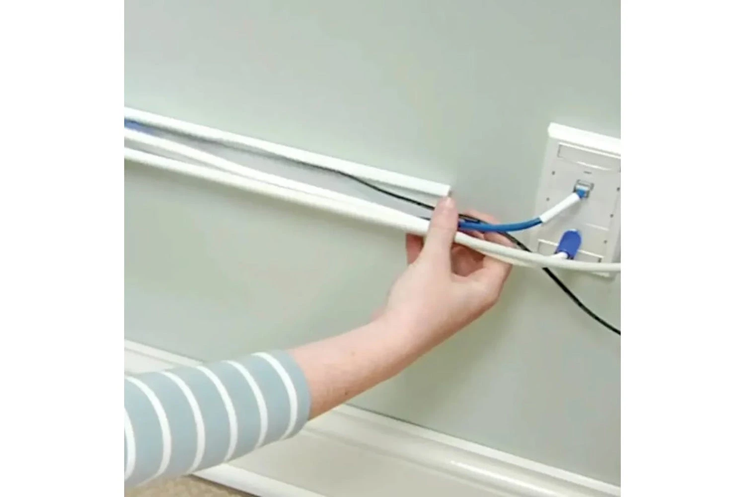 - Trim parts to fit and add couplings and elbows for corners keep cords tidy