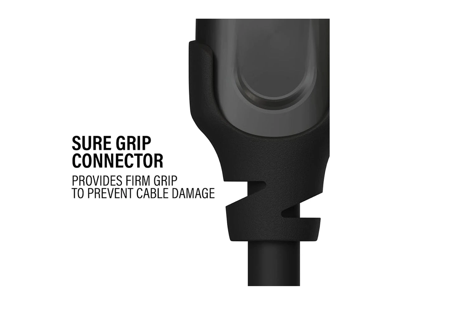 - The sure-grip connector provides a firm grip to prevent cable damage
