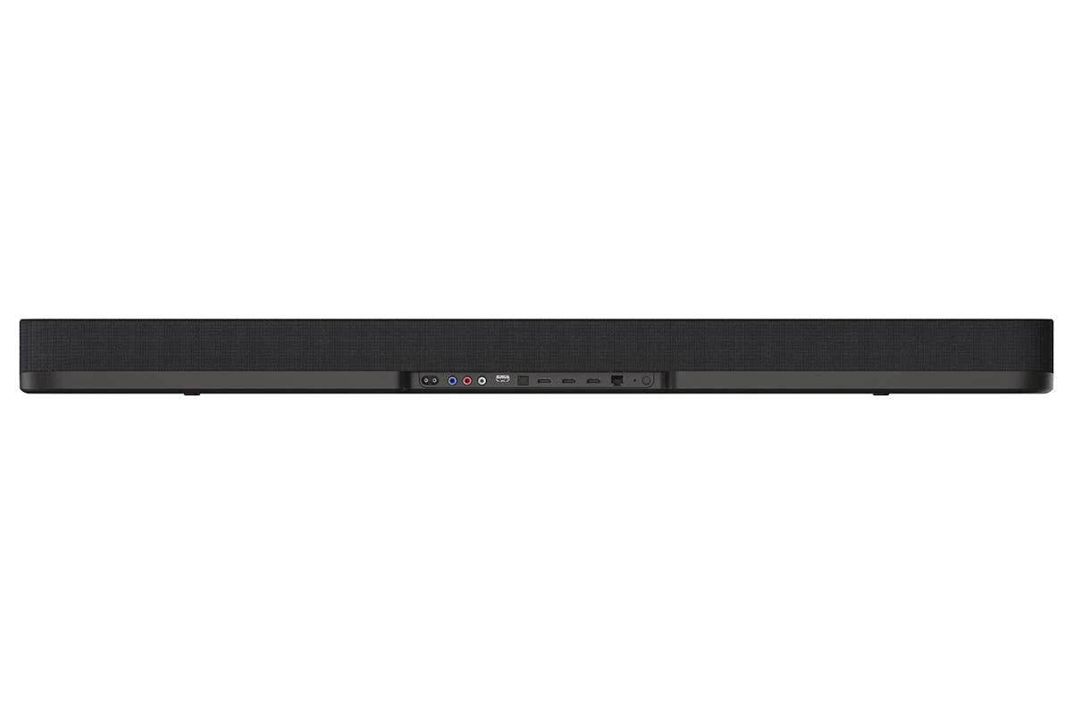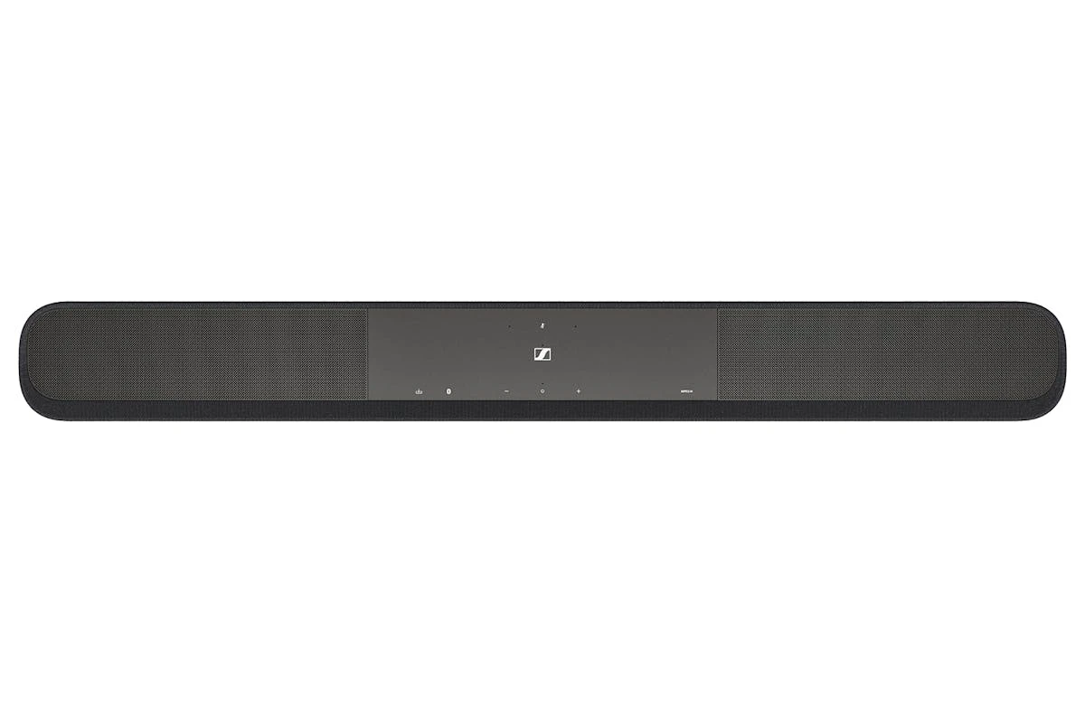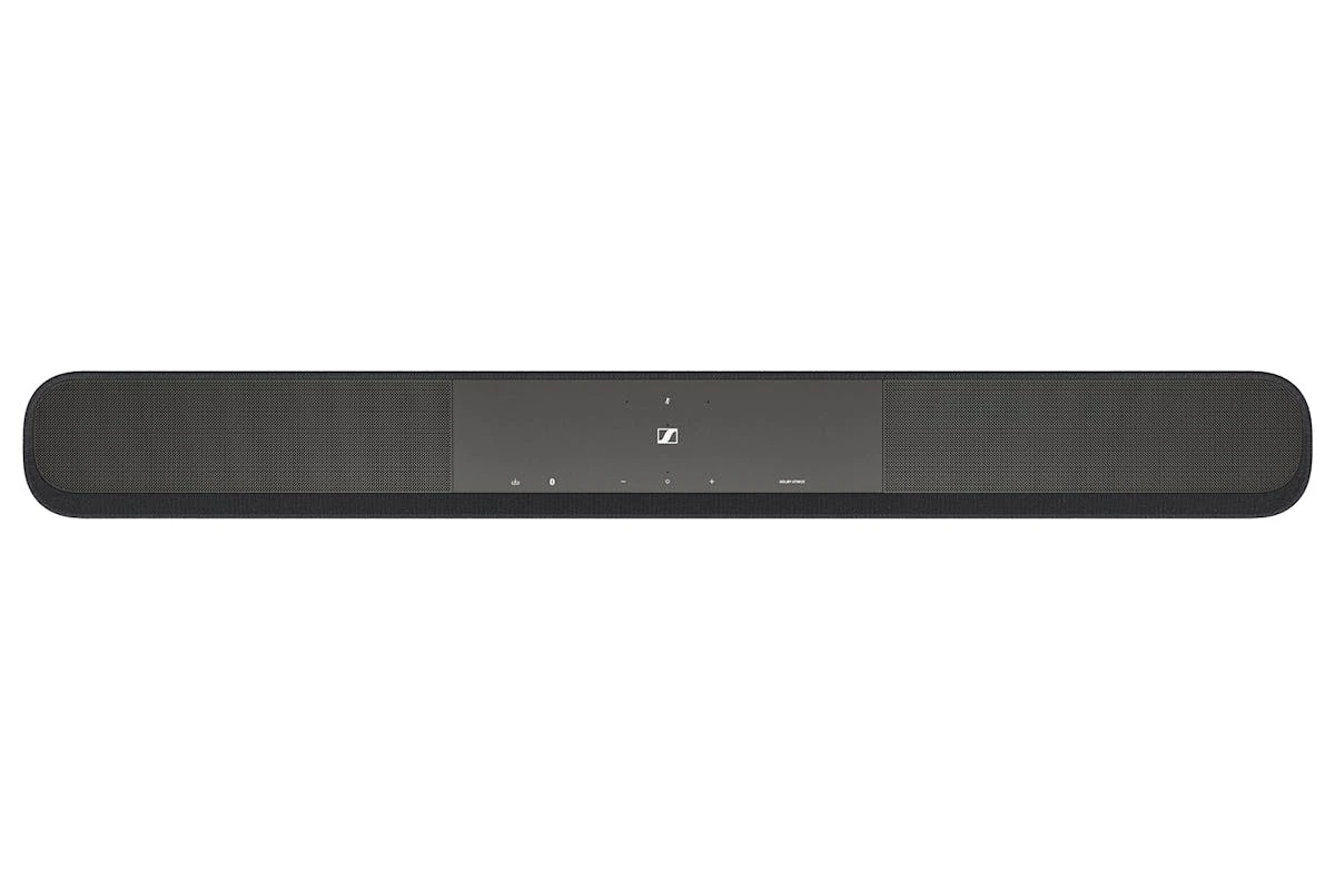 The soundbar is designed to perform with Sennheiser audio DNA. Seven high-end aluminum cone full-range drivers ensure incredibly sharp fidelity and clear mids. Closed chambers hold dual 4” long-throw woofers for bass as low as 38Hz.