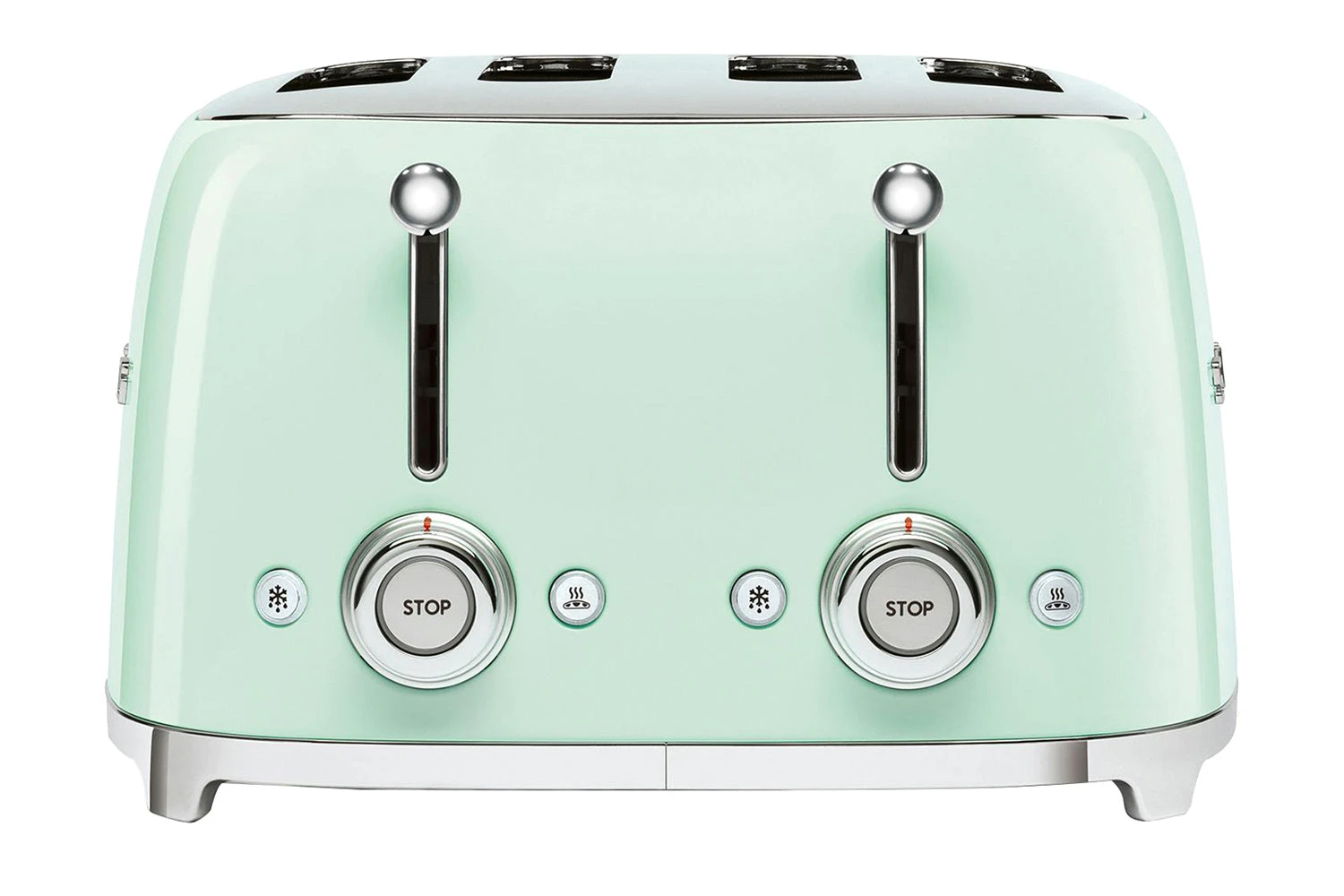 Whether you prefer well toasted bread or a lighter browning, Smeg’s 4 slot toaster offers six browning levels and three pre-set programmes for reheating, defrosting and bagel toasting (single side).