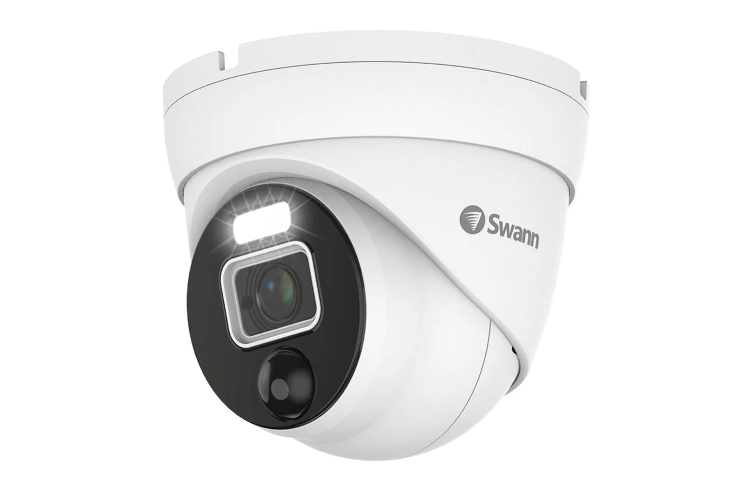 Add-on Dome Camera with 6K Mega HD Video, Video Analytics, 90° Viewing Angle, Audio Monitoring & Controllable Spotlights.